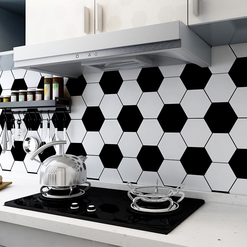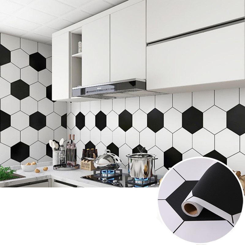 Papel De Parede Adesivo 3D Azulejo Futebol Preto Branco 1mx61cm Para Cozinha Banheiro Lavável