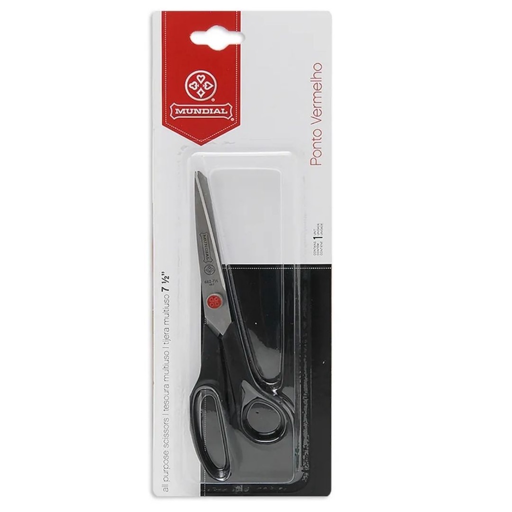 TESOURA MULTIUSO PRETA PONTO VERMELHO MUNDIAL 662-7.1/2 COSTURA