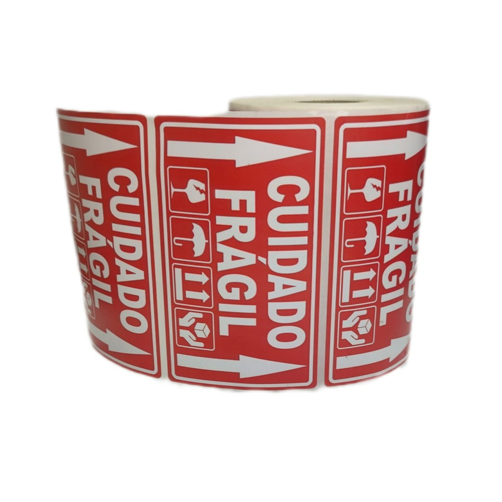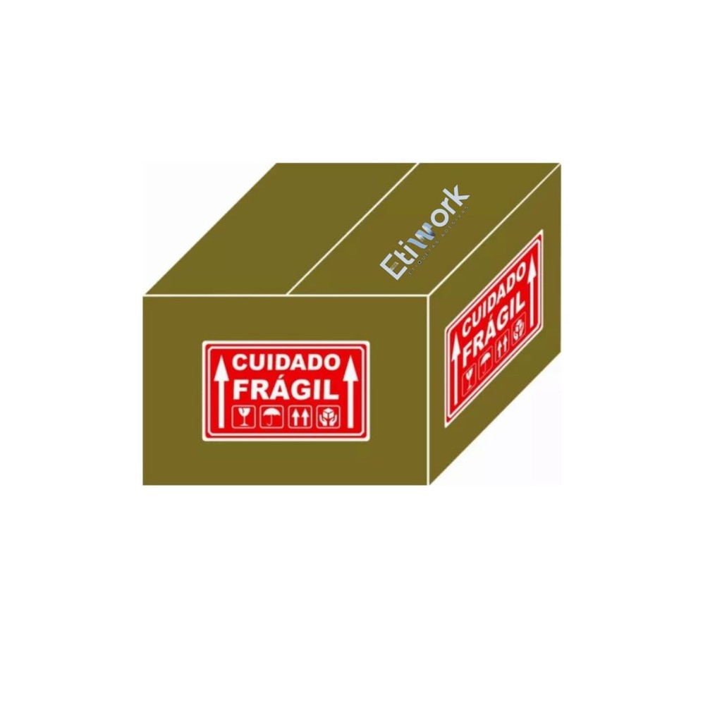 ETIQUETA ADESIVA CUIDADO FRÁGIL 100X60MM SETA PARA CIMA