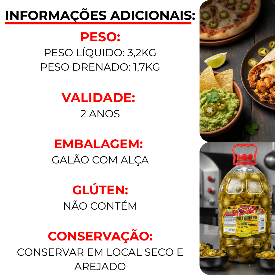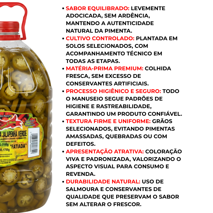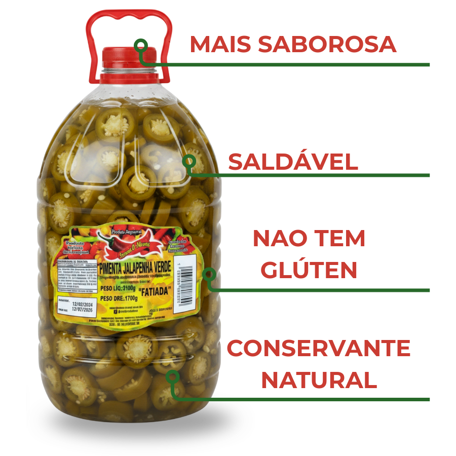 Pimenta Jalapeño Verde Conserva Balde Gourmet 3,2kg