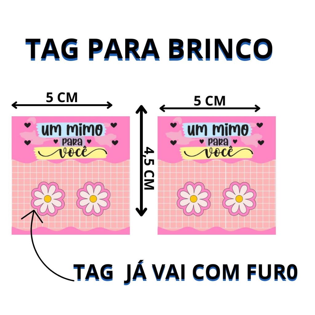Kit com 100 Tag para brincos Lembrancinha para cliente - Um Mimo Para Você Já Possuem o Furo Para encaixar o Brinco