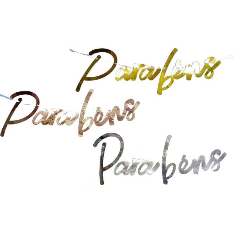 Faixa Parabéns Metalizado 60cm Varal Parabéns Aniversário Varal Escrita Parabéns Festa de Aniversário