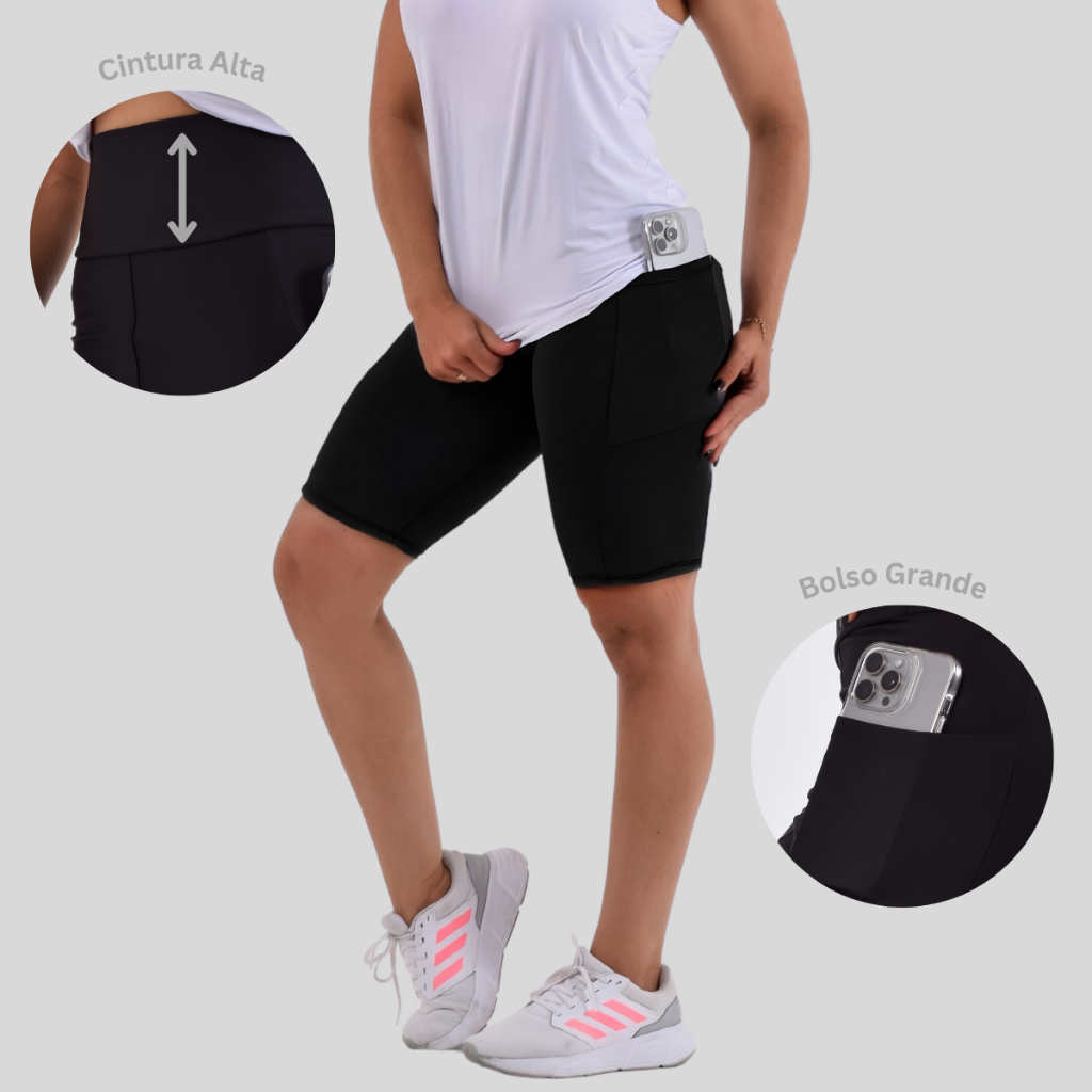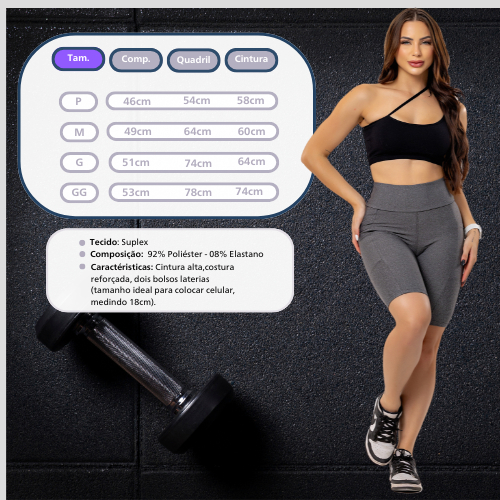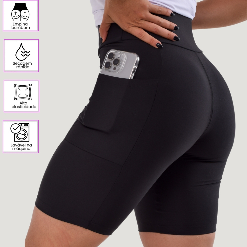 Bermuda Academia Com Bolso Feminina Ciclista Cós Alto