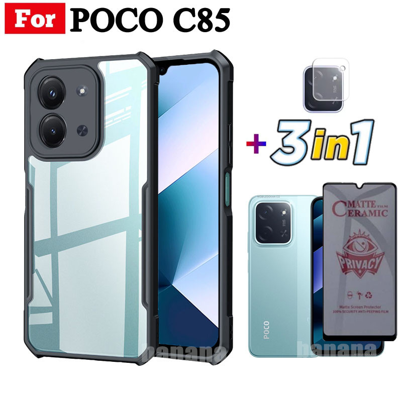3 Em 1 Poco C85 Capa De Telefone À Prova De Choque Para C75 Anti Spy Soft Cerâmica Fosco Privacidade Vidro Temperado