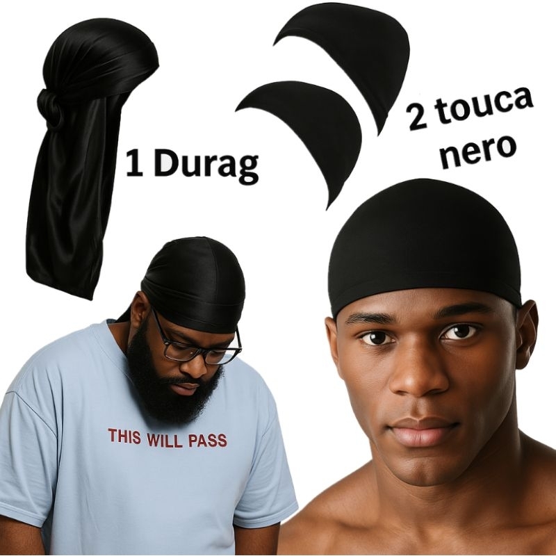 Kit Durag + 2 Wig Cap Touca De Nero durag preta