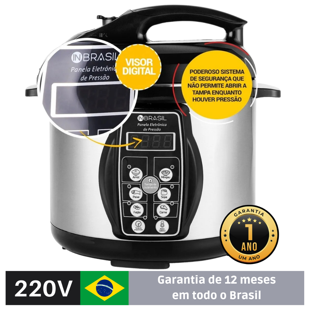 Panela De Pressão Elétrica Inox - 4 Litros - Multifuncional Digital - In Brasil