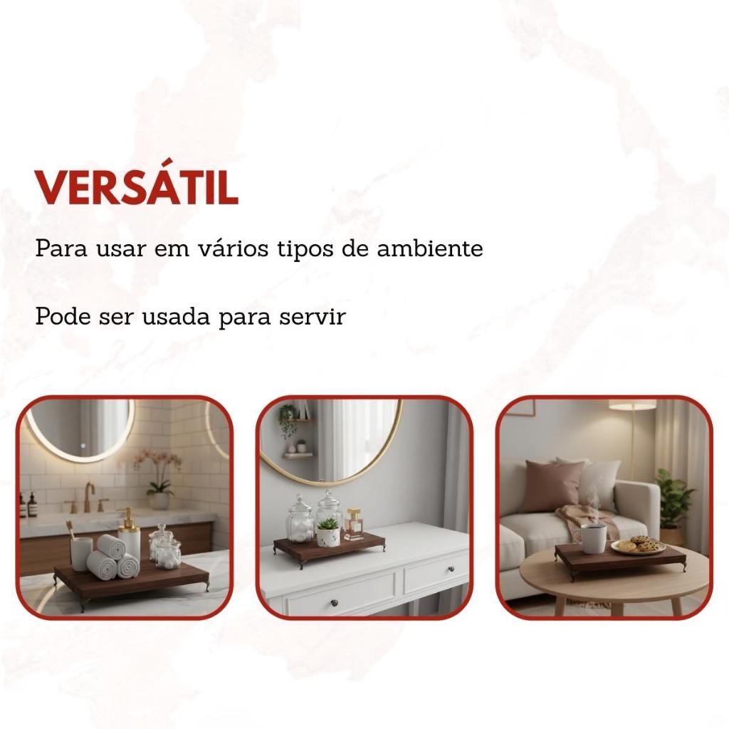 Bandeja Decorativa de Madeira Rústica Pequena Pezinho Enfeite Aparador Perfume Lavabo Hall Mesa Sala