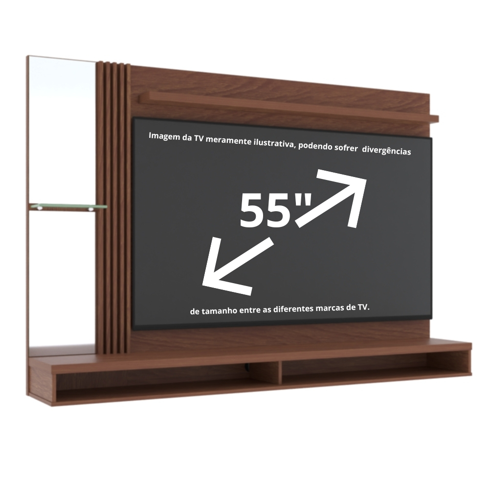 Painel Home para Tv até 55 Polegadas Ripado com Espelho Paris 160cm