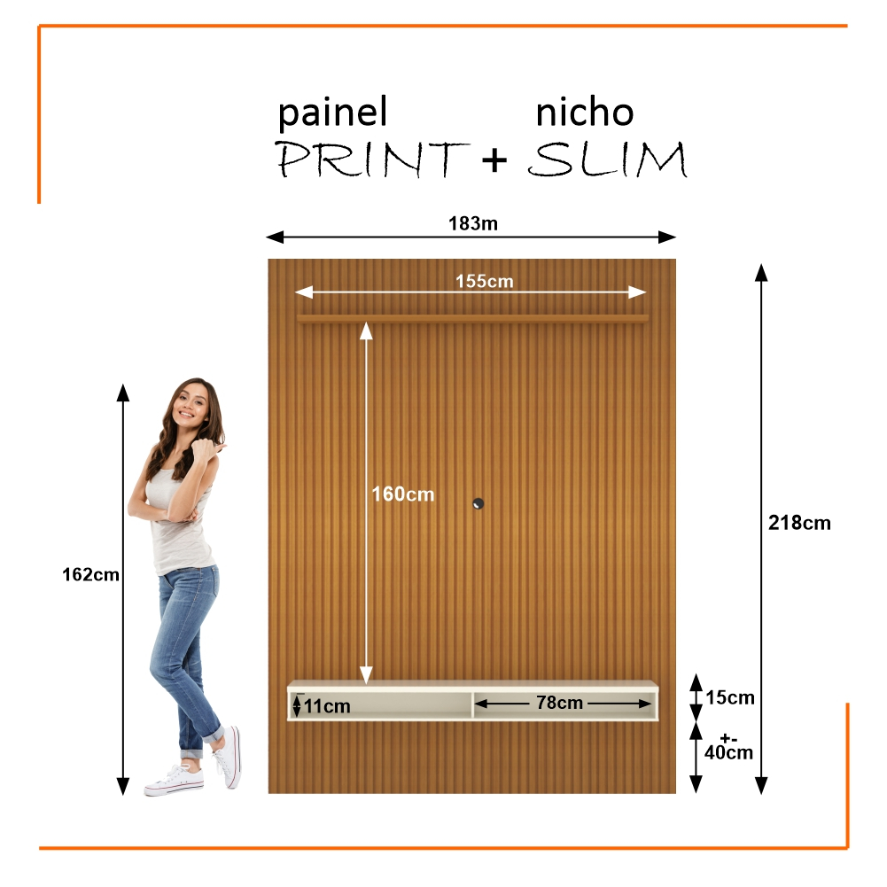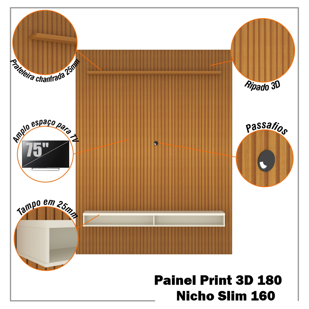 Painel Ripado 3D para TV Até 75 Polegadas Print com Nicho 180cm