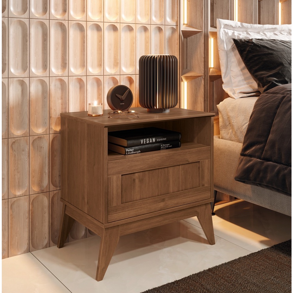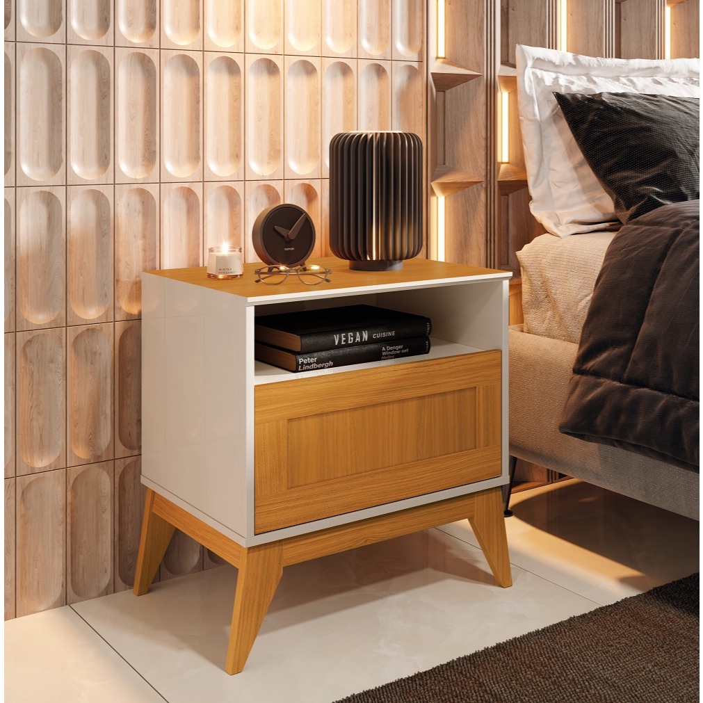 Mesa de Cabeceira Siena tampo e pés em MDF com 1 Gaveta