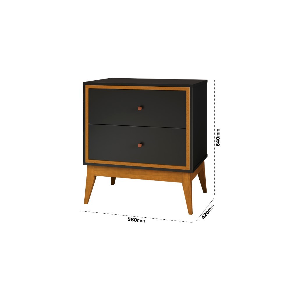 Mesa de Cabeceira 2 Gavetas com Pés em Madeira Maciça Arruna