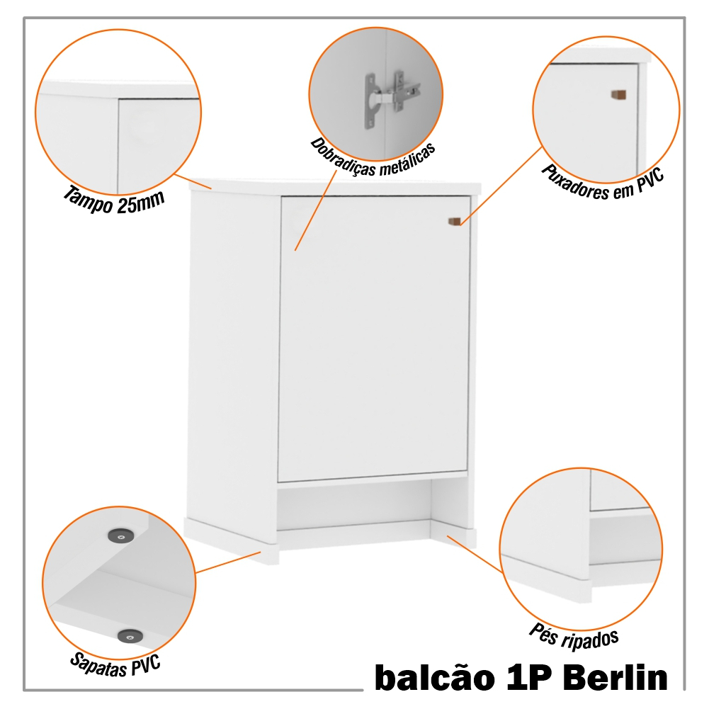 Balcão 1 Porta 1 Prateleira Tampo MDP 25mm Berlin - ViaNossa