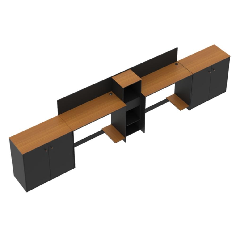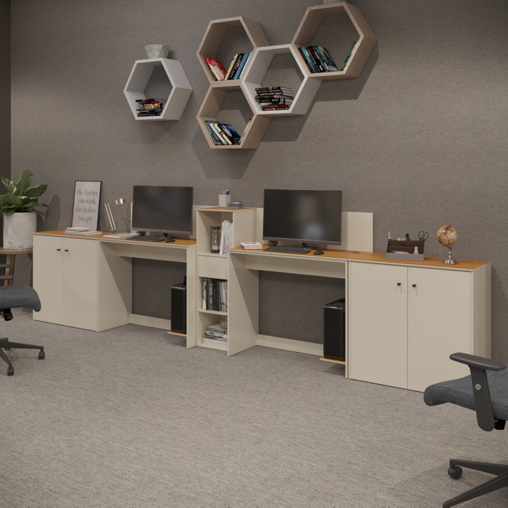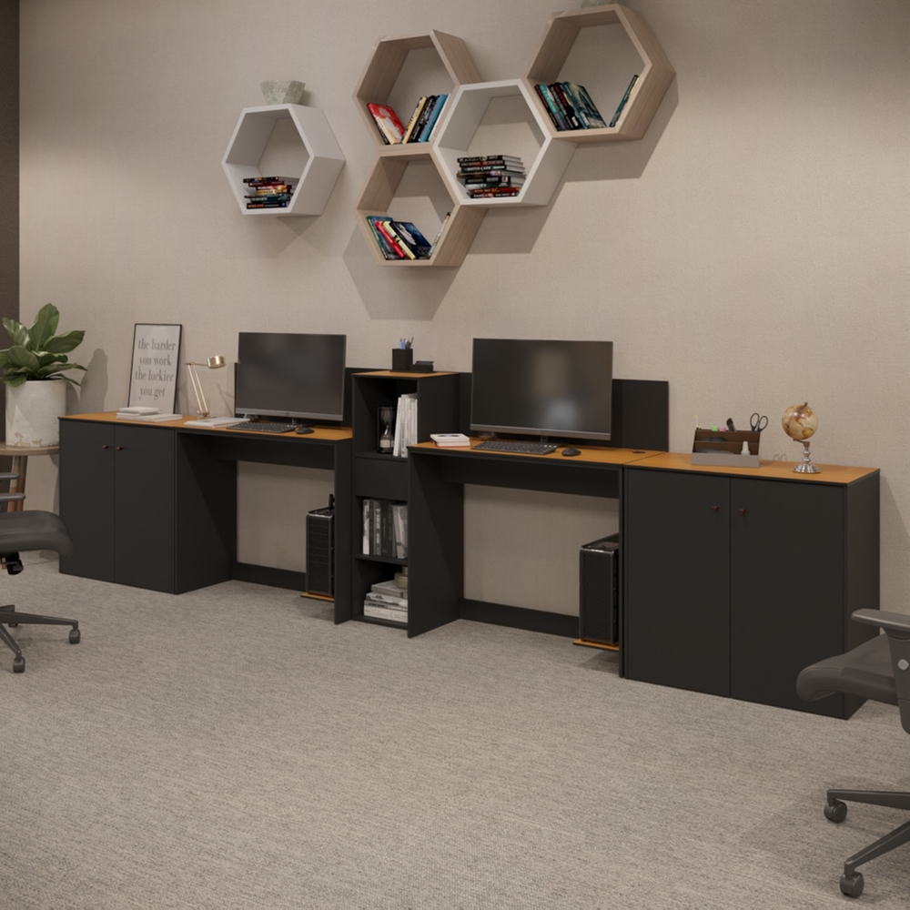 Conjunto de Escritório Smart 1 Livreiro 2 Buffet e 2 Mesas 90cm