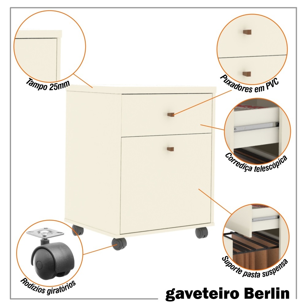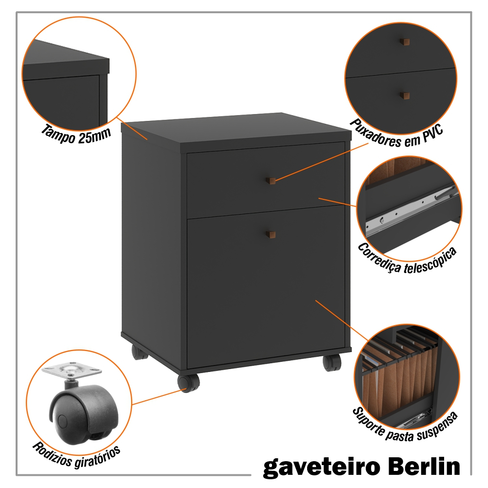 Gaveteiro Arquivo Office MDP Rodízio Berlin - ViaNossa