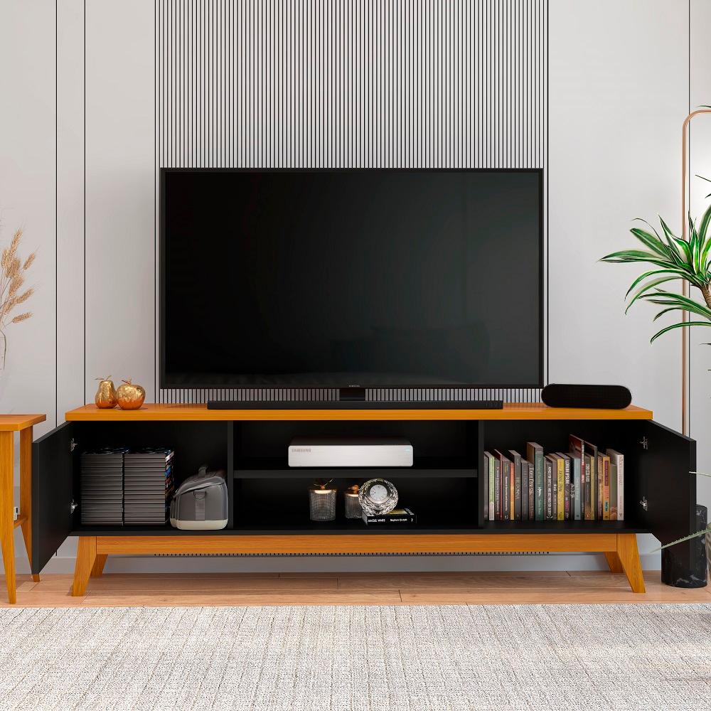 Conjunto Sala de Estar Buffet Ripado Rack 2 Portas 180cm