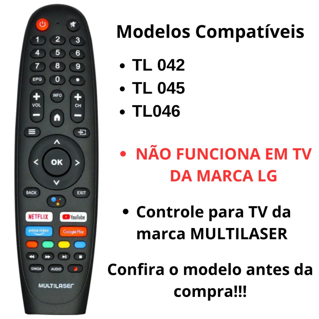 Controle Remoto Para Tv Multilaser Smart Tl042 Tl045 Tl046