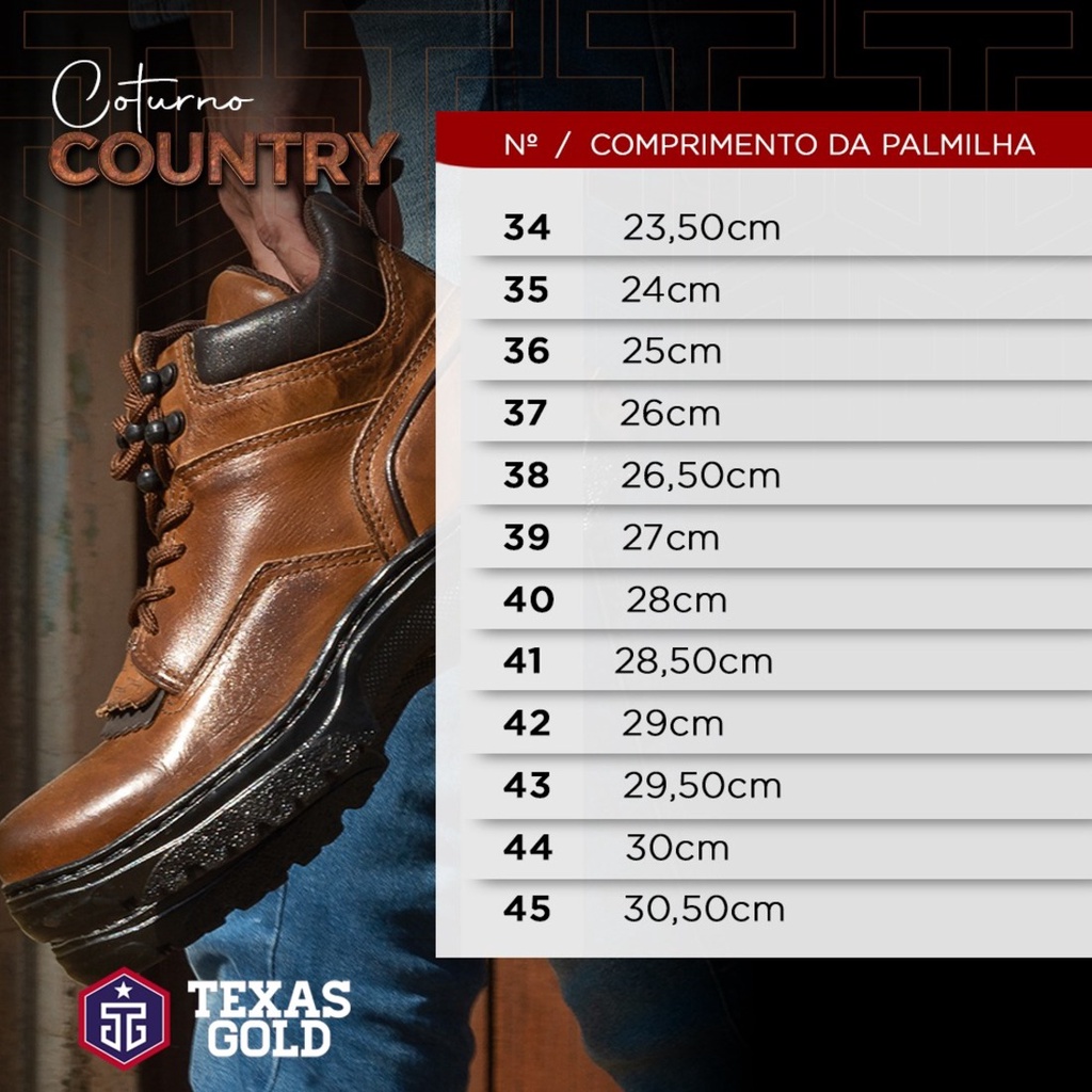 Coturno Bota Cano Curto Clássico de Couro Texas Gold Caramelo