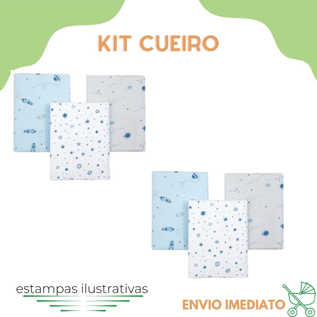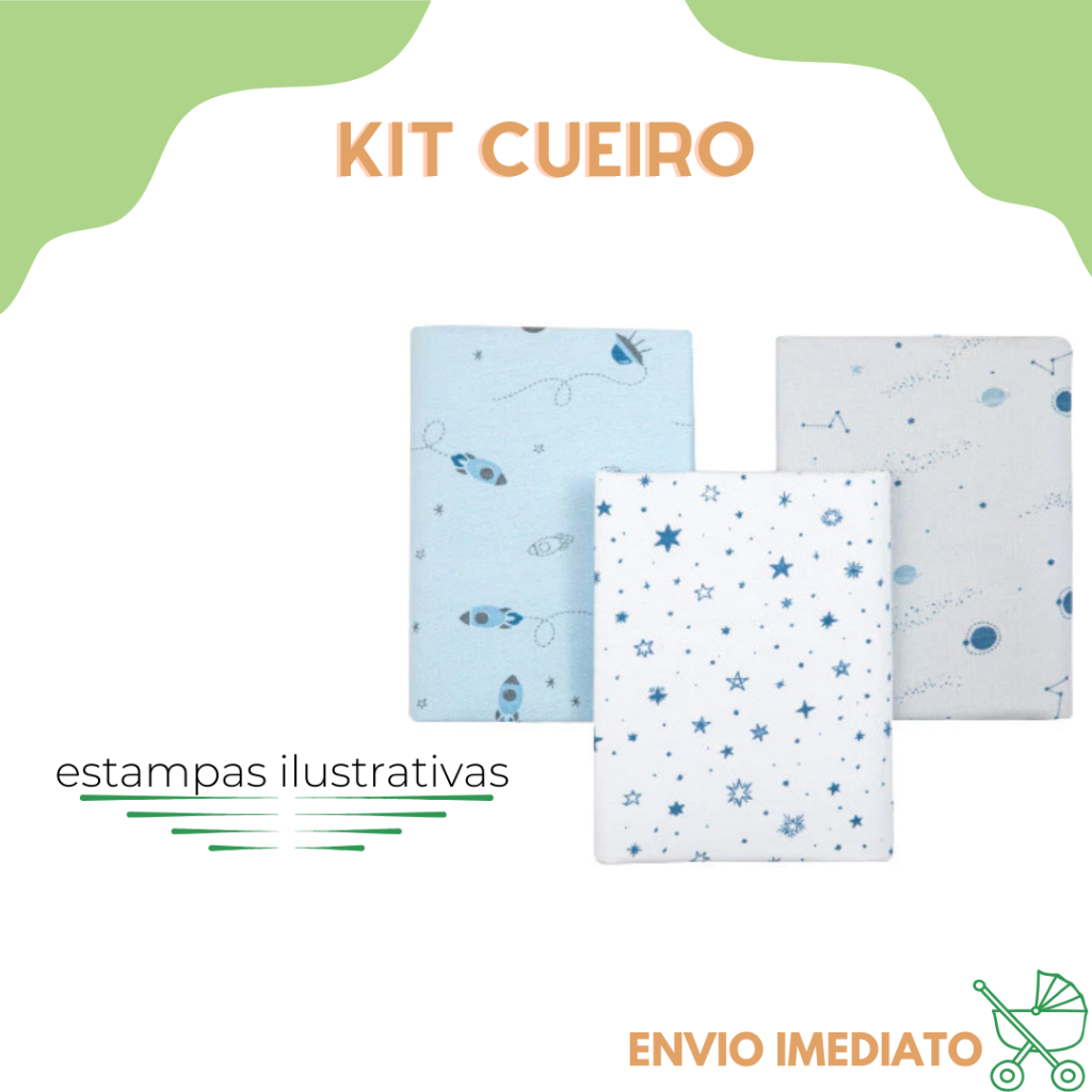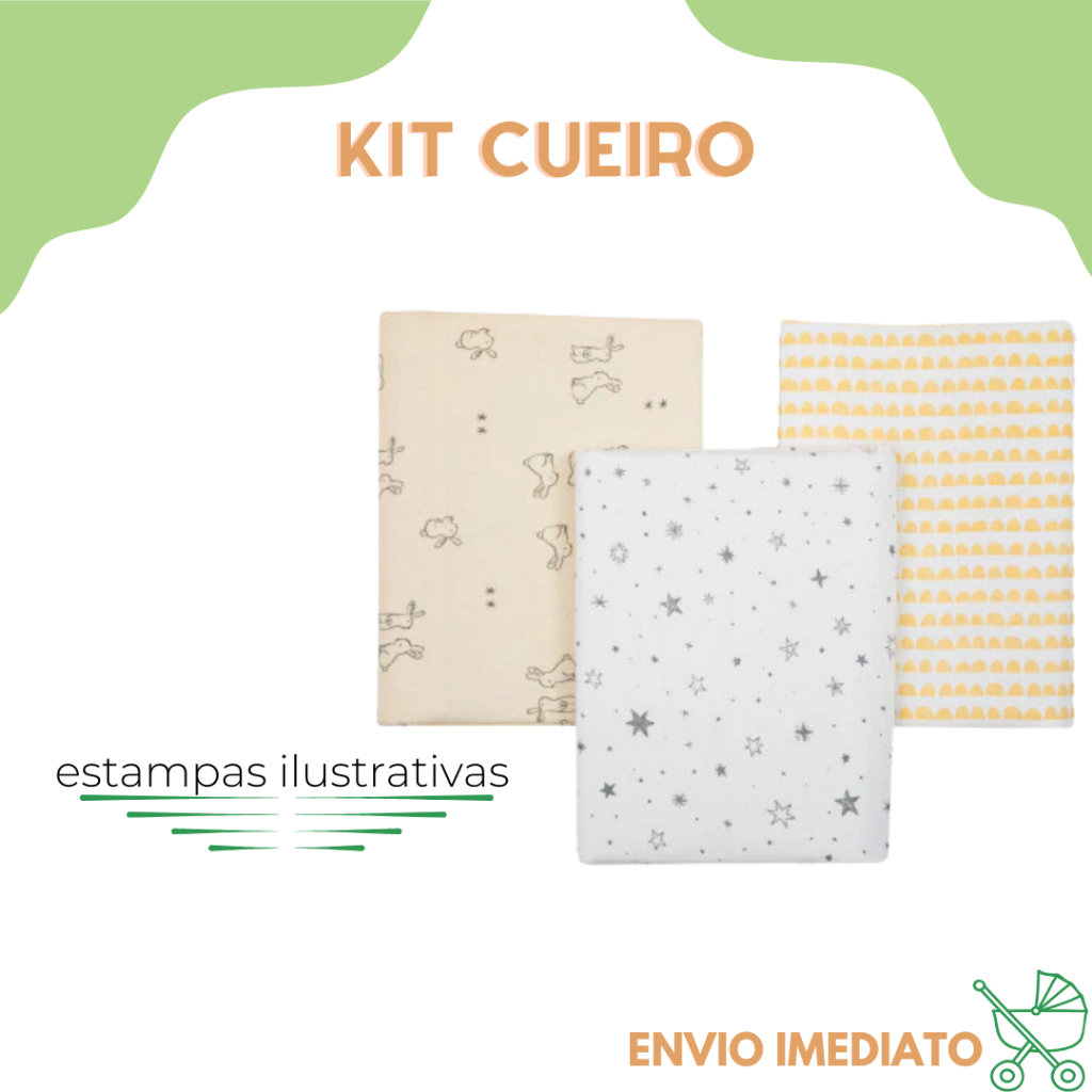 Kit 3 Cueiro Flanelado Estampado 50 x 80 Enxoval Infantil Bebê Menino Menina Neutro