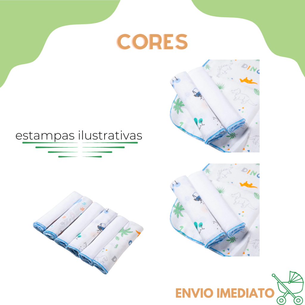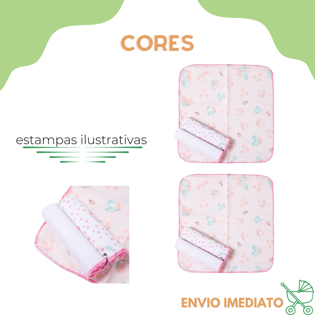 Kit 12 Pano de Boca toalha Paninho Fralda de Bebe 100% Algodão 30cmx30cm