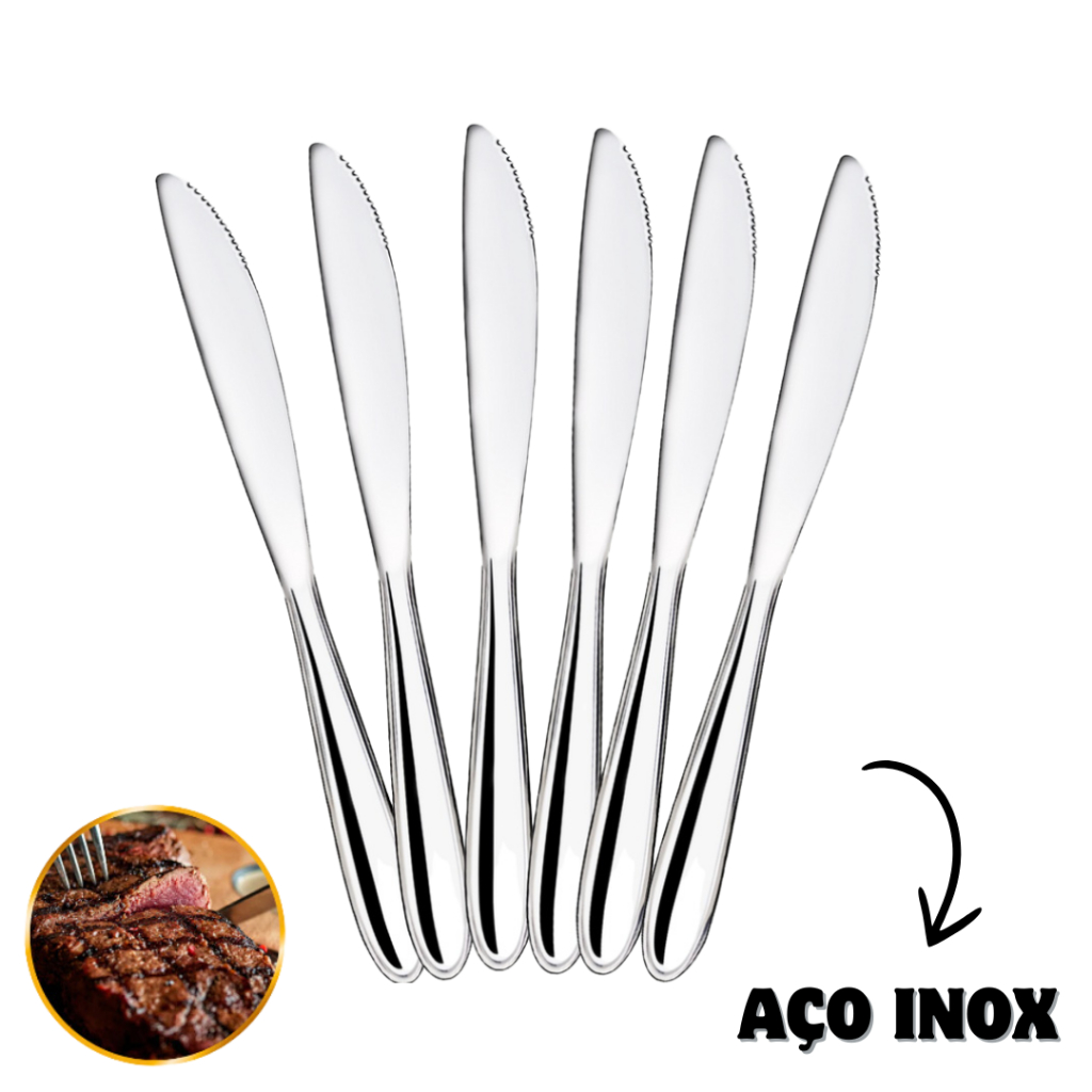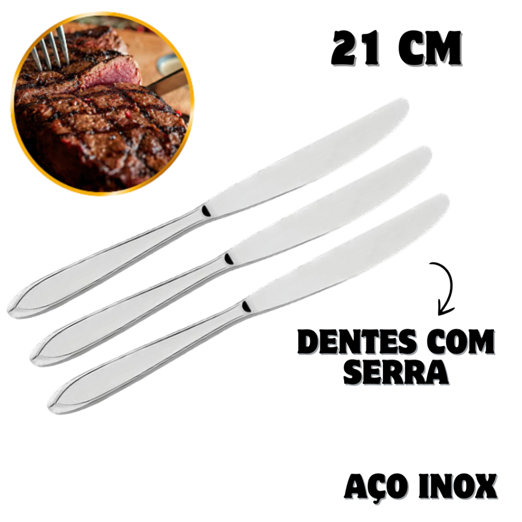 Jogo Faca de Mesa, Churrasco com serra Talher restaurante de Aço Inox 21cm 6, 12 ,24 e 36 unid