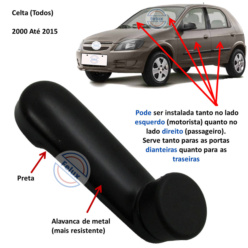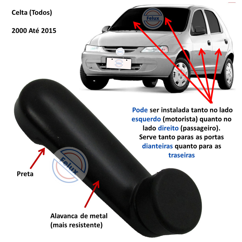 Manivela do vidro Celta 00-15 Preta 8 Estrias - Grossa (1 Unidade)
