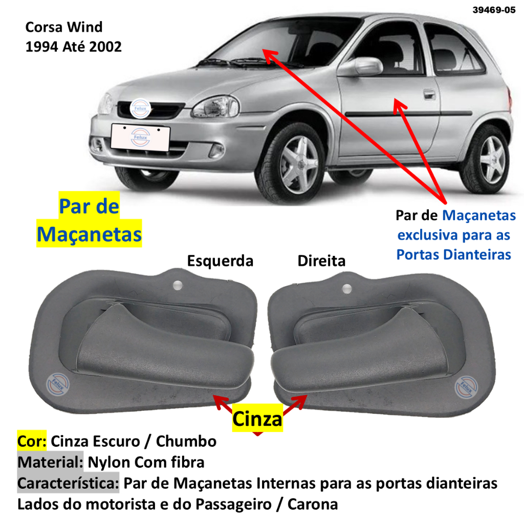 Par Maçanetas Interna Corsa Wind 94-02 Cinza
