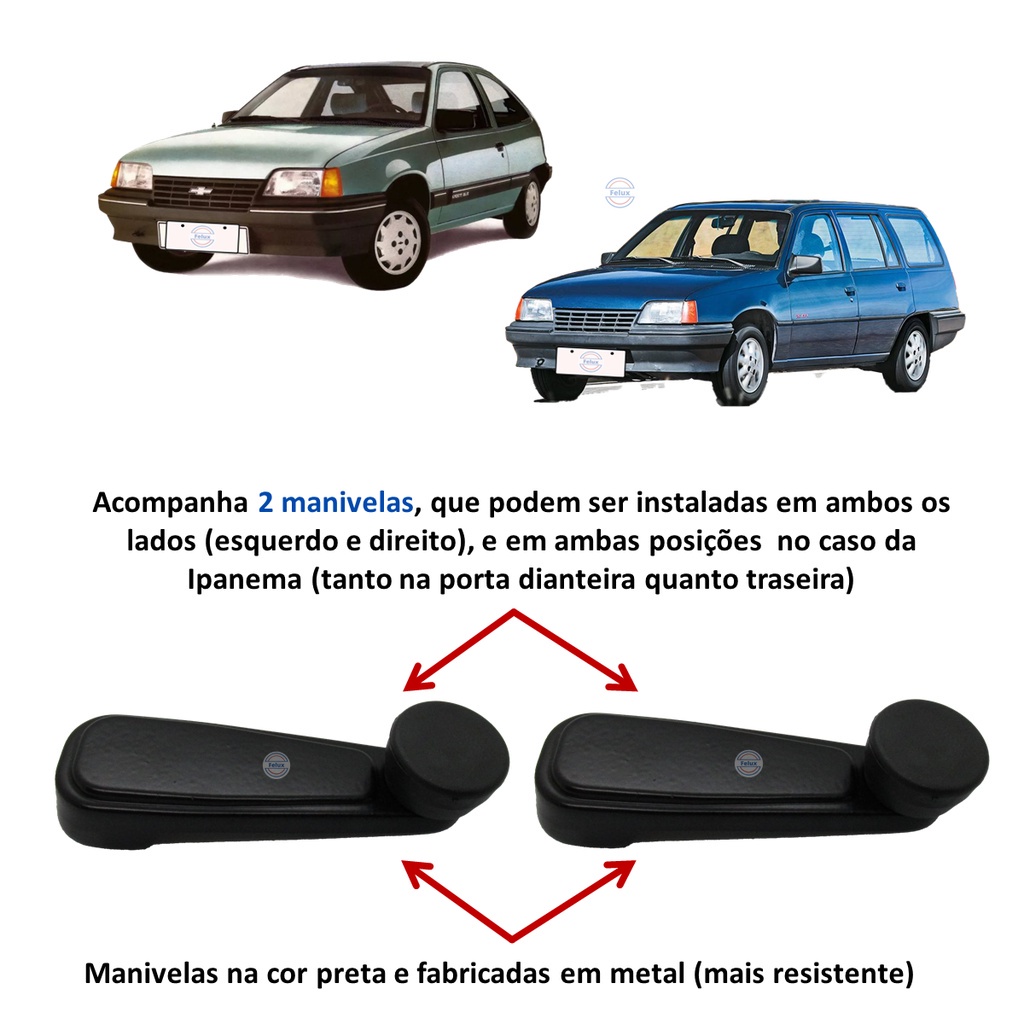 Par Manivelas do vidro Kadett e Ipanema 89-98 Preta (Metal)
