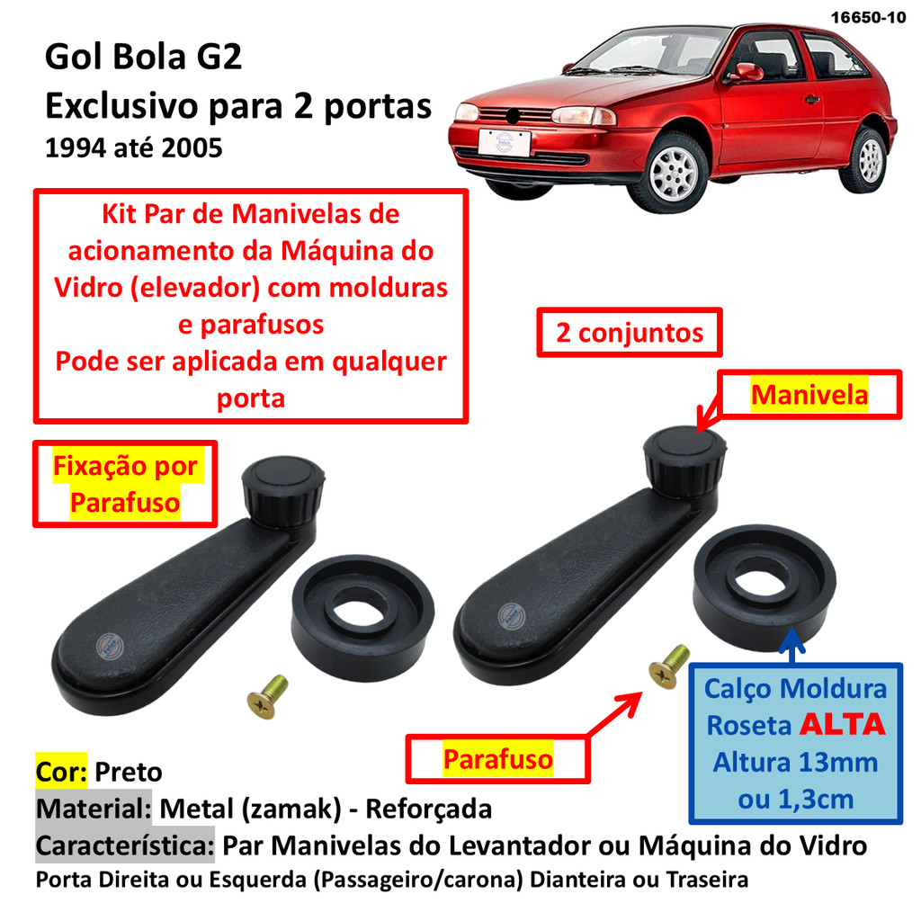 Par Manivelas Metal Vidro Completa Gol Bola G2 94-05 Preta