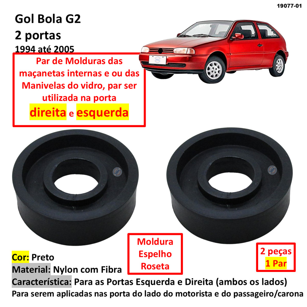 Par Molduras Espelho da Manivela do vidro Gol Bola G2 Preta