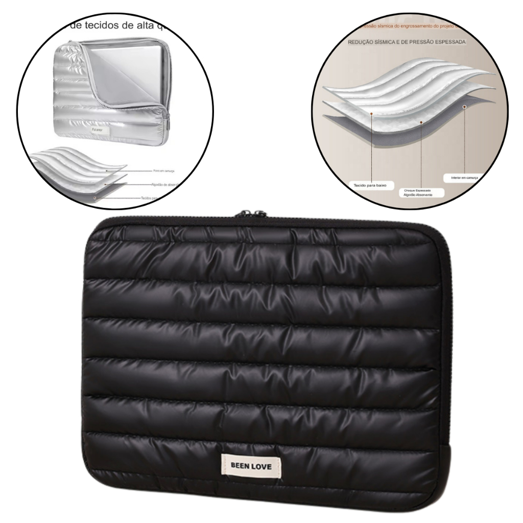 Bolsa Case Para Notebook Puff 14'' Capa Protetora Com Forro Interno Acolchoado