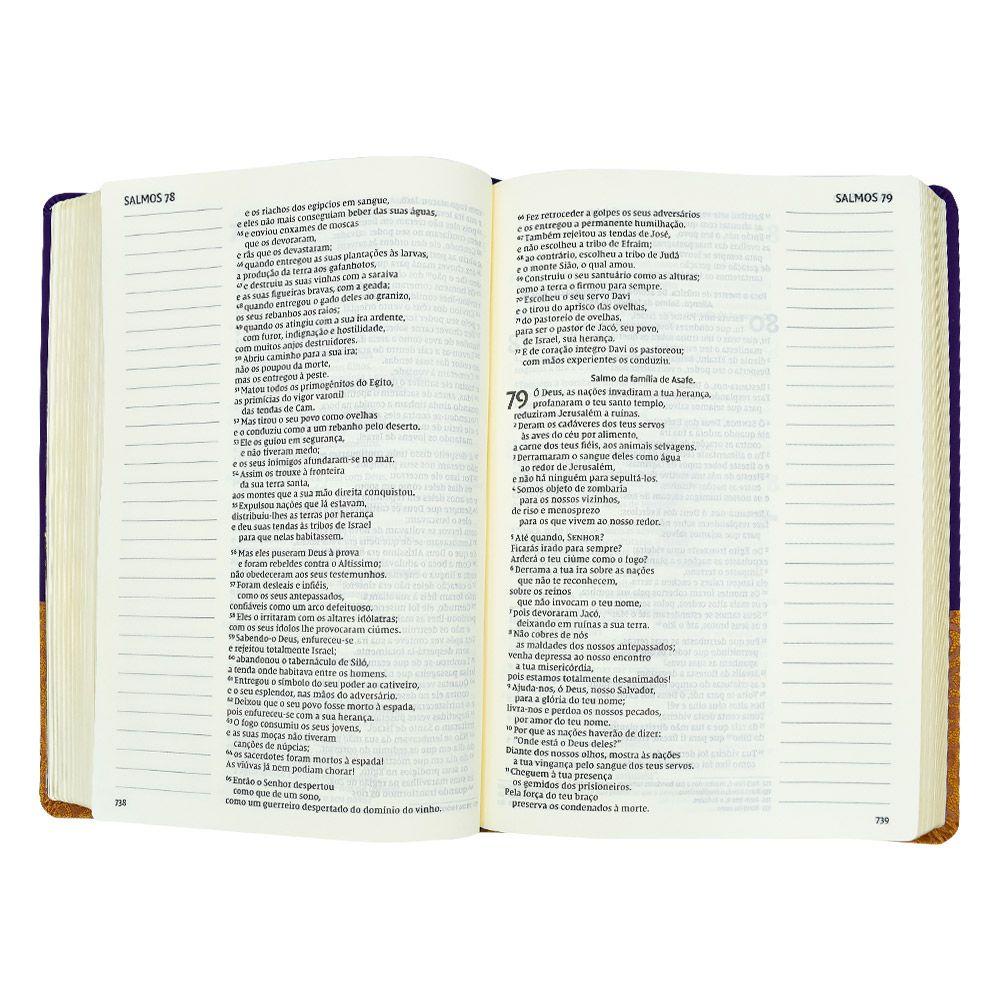 Bíblia NVI | Letra Grande | Leitura Perfeita | Espaço para Anotações | Couro Soft | Roxo e Amarelo