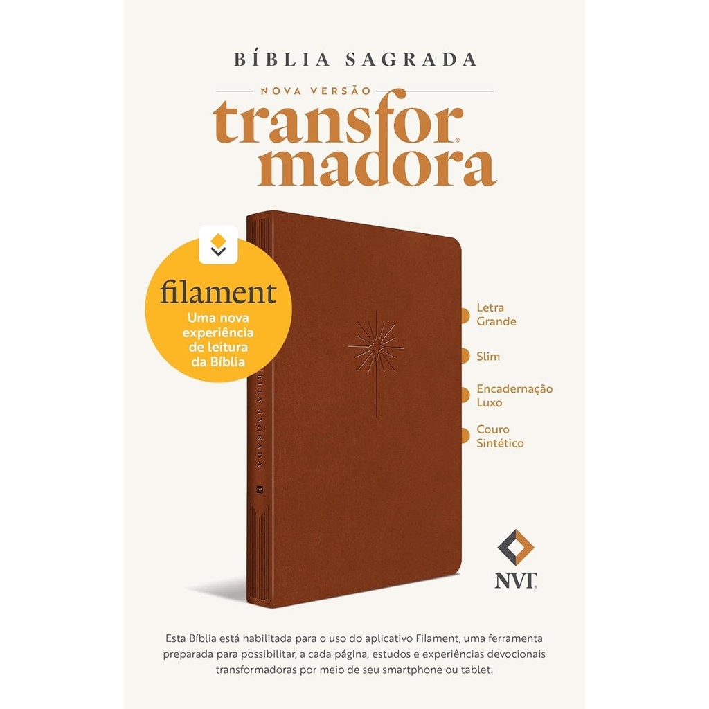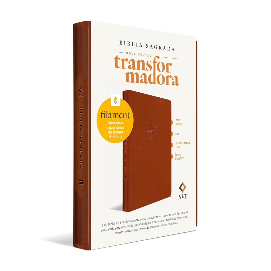Bíblia Slim Filament | NVT | Letra Grande | Capa Couro Sintético Marrom
