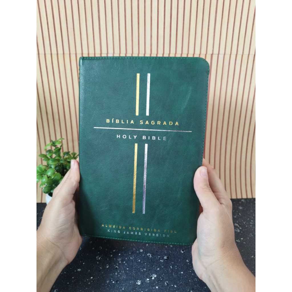 Bíblia Sagrada | ACF | KJV | Bilingue | Português e Inglês | Leitura Perfeita | Couro Soft | Verde