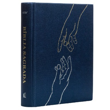 Bíblia Sagrada NVI Espaço para Anotações Leitura Perfeita | Capa Dura | Tecido Azul | Mãos Que Oram