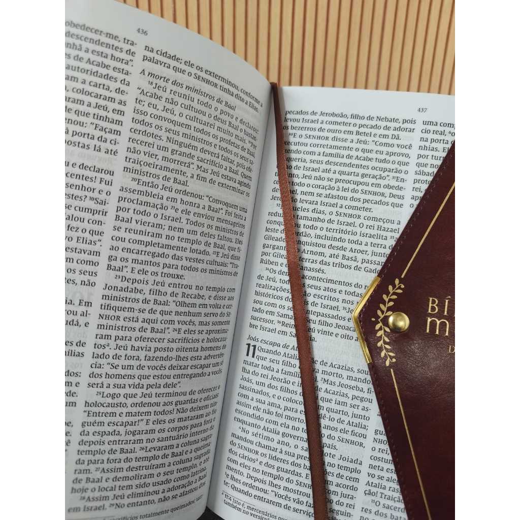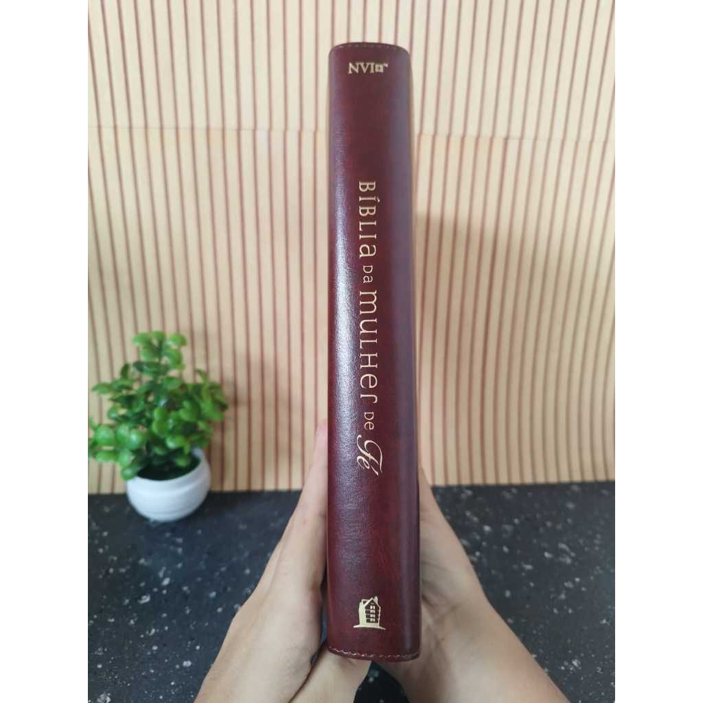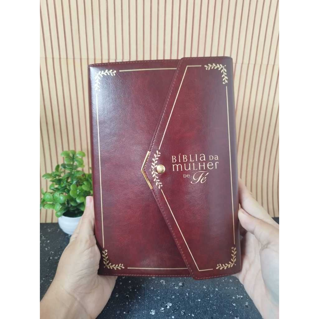 Bíblia Da Mulher De Fé Grande | NVI | Letra Grande | Couro Soft Vinho com Fechamento Carteira