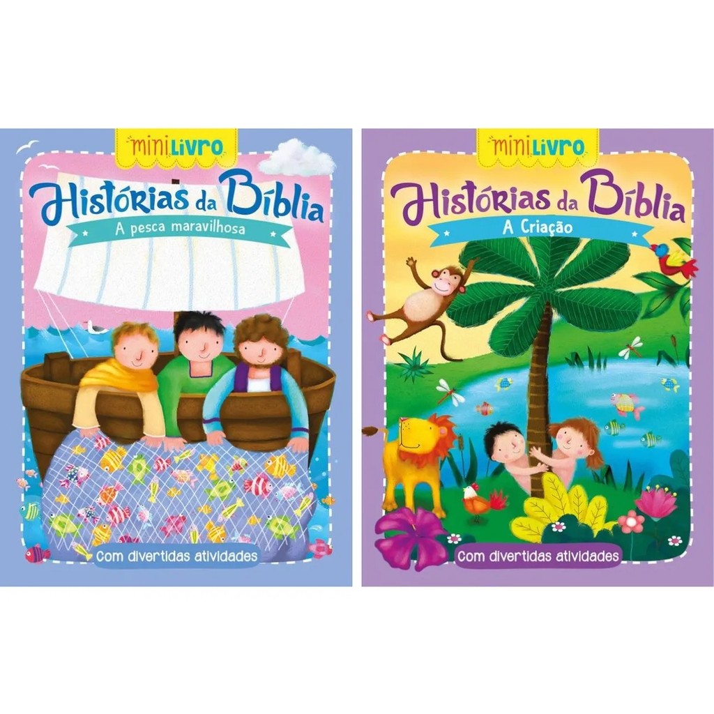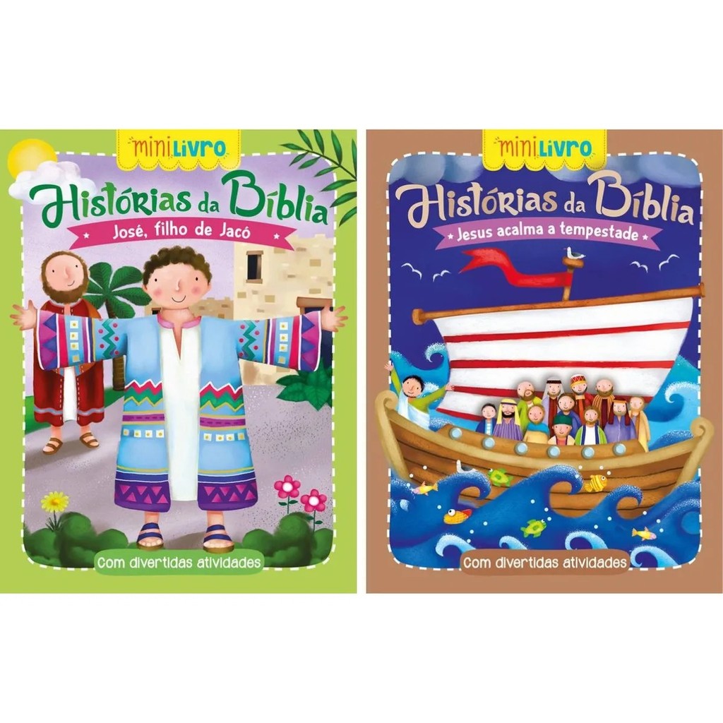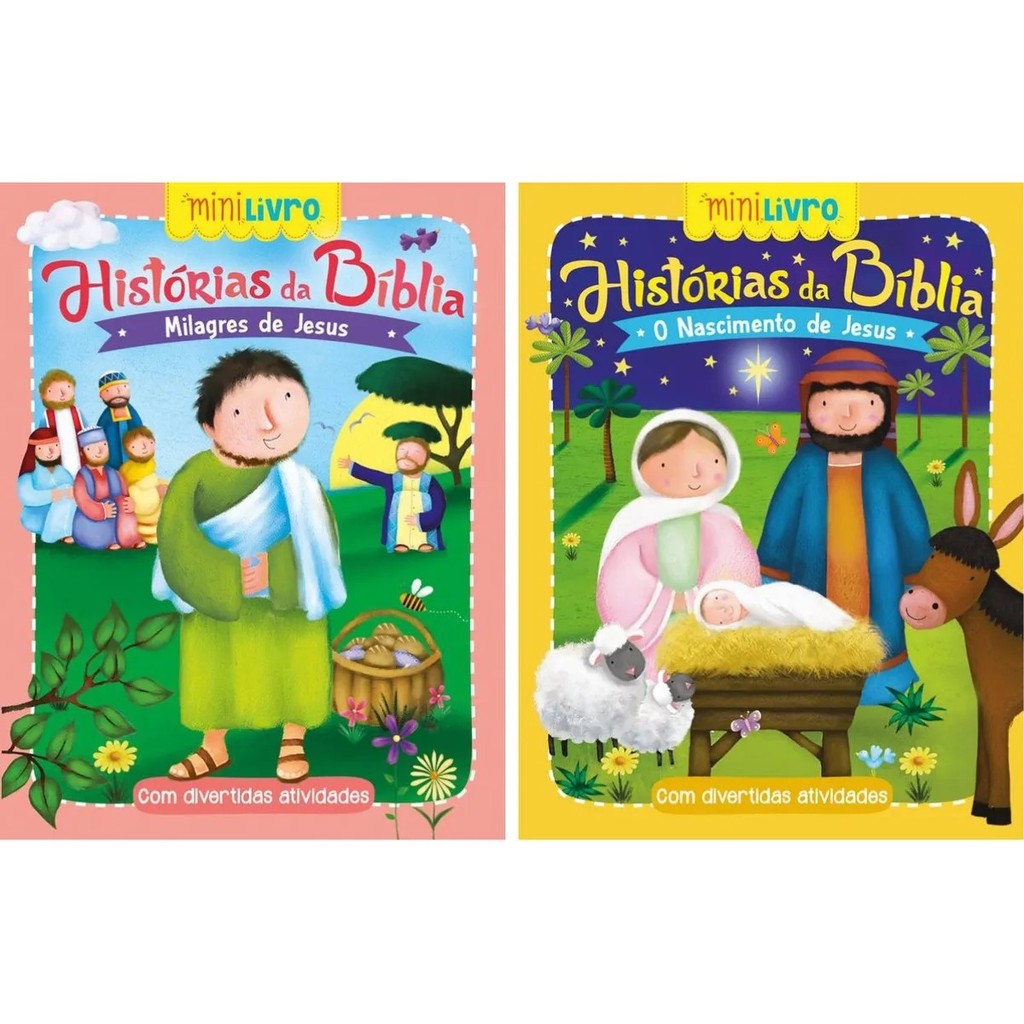 Kit Com 12 Mini Livros - Coleção Histórias Da Bíblia Com Atividades