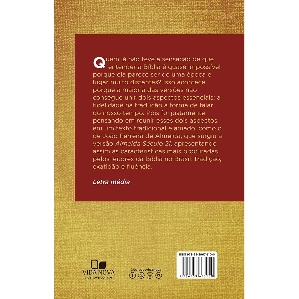 Bíblia Sagrada Almeida Século 21 | Letra Normal | C/ Referencias | Capa Dura | Cruz de Cristo