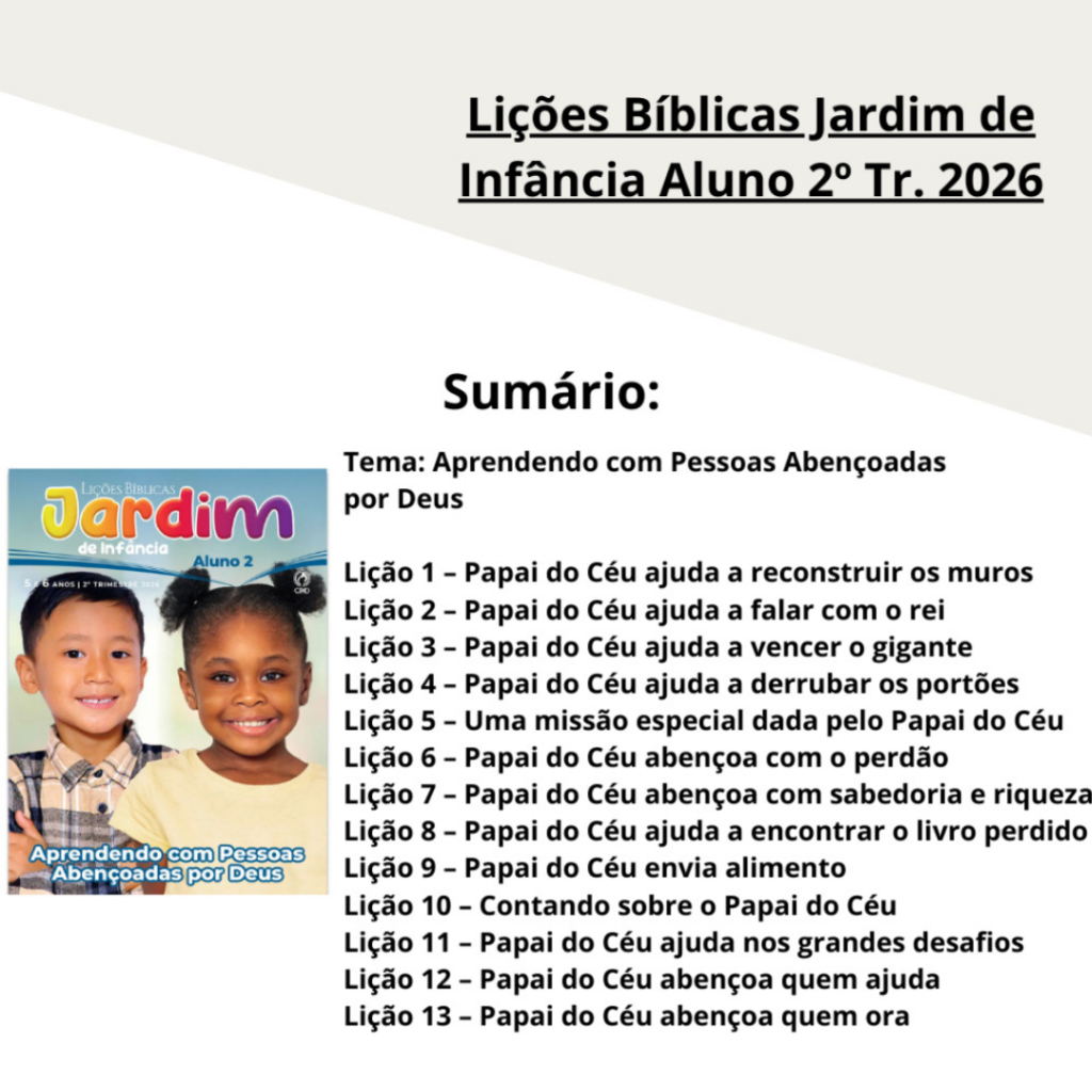 KIT COM 05 Revista Lições Bíblica Jardim de Infância Aluno 2º Trimestre 2026