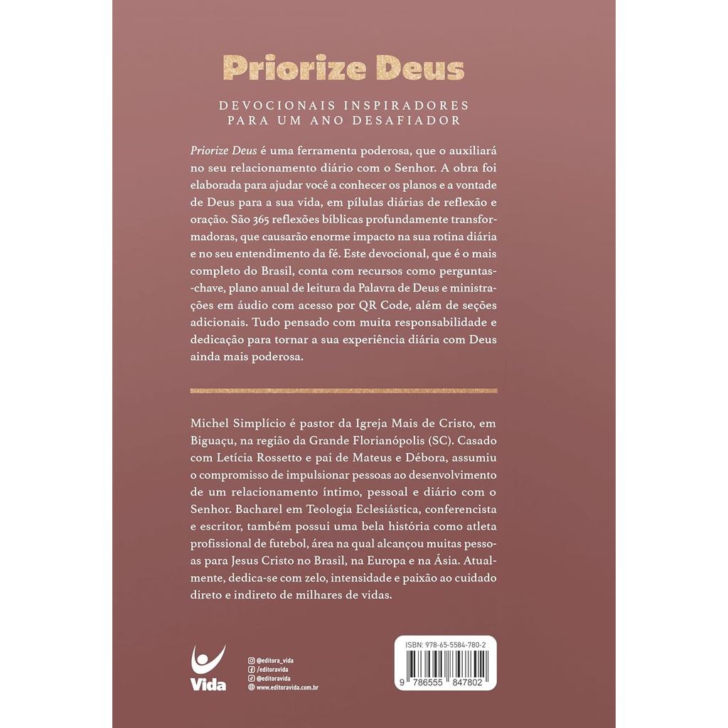 Devocional Priorize Deus 2026 | Devocionais Diários Para 365 Dias | Mocha | Michel Simplicio