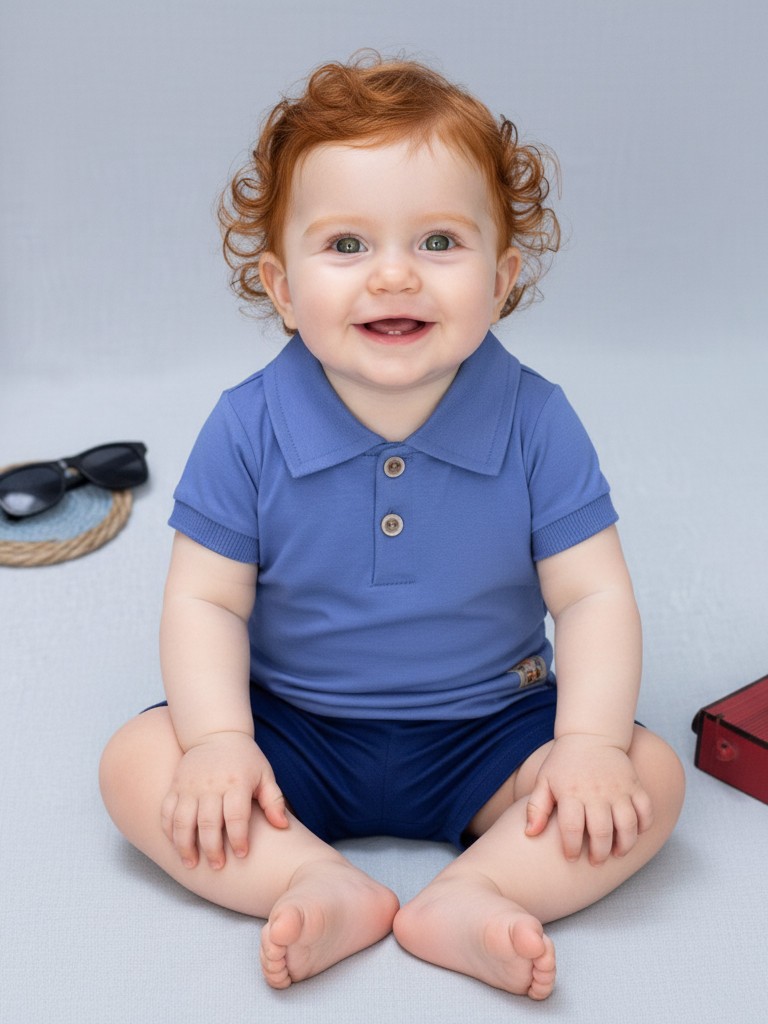 Conjunto Bebê Gola Polo Manga Curta Bermuda Verão Menino
