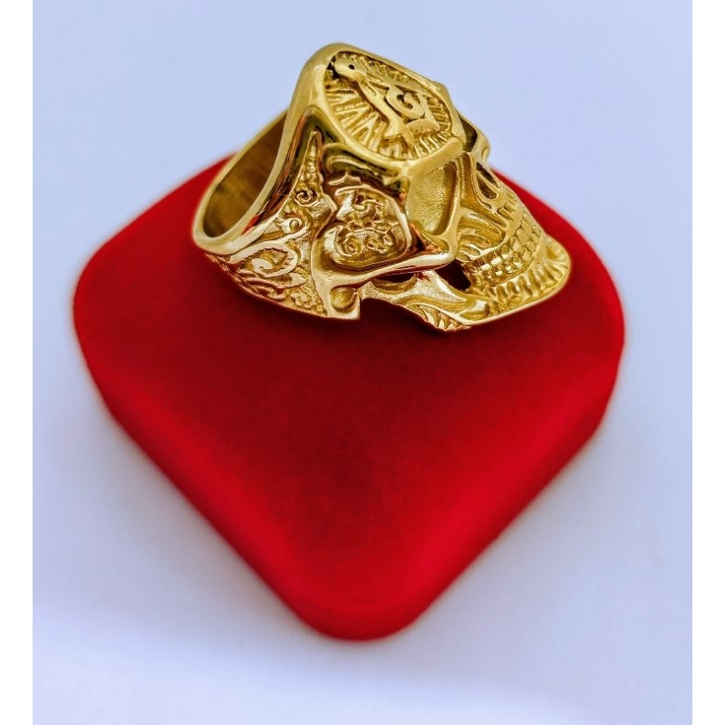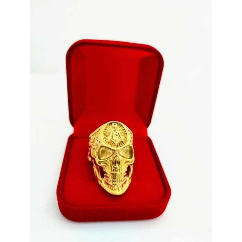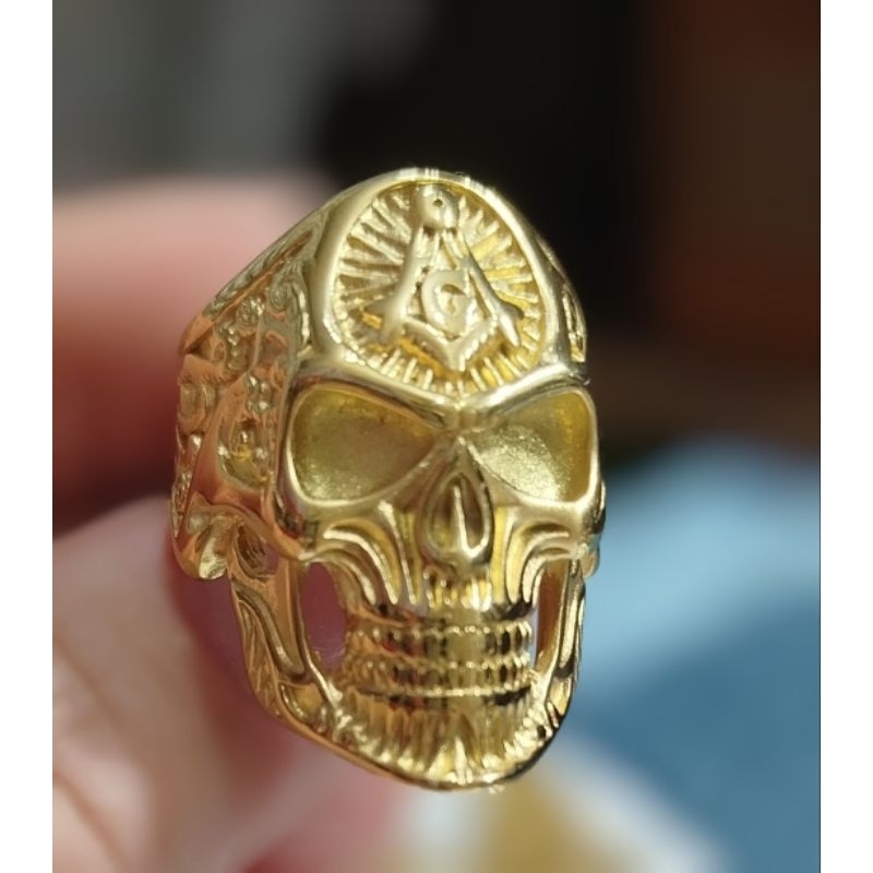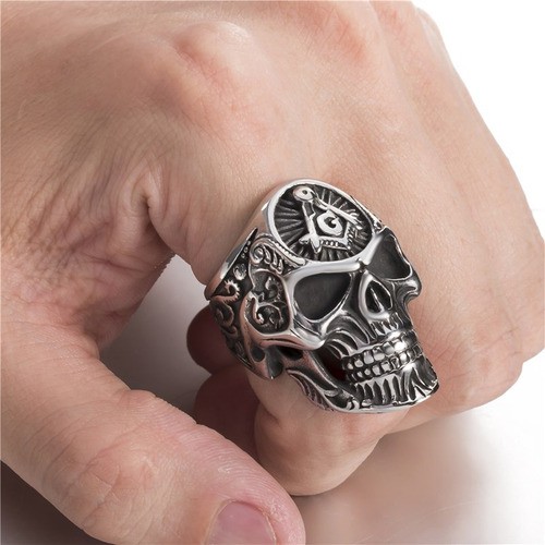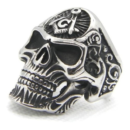 Anel Aço Inox Maçon Caveira Biker Metal Rock Mc