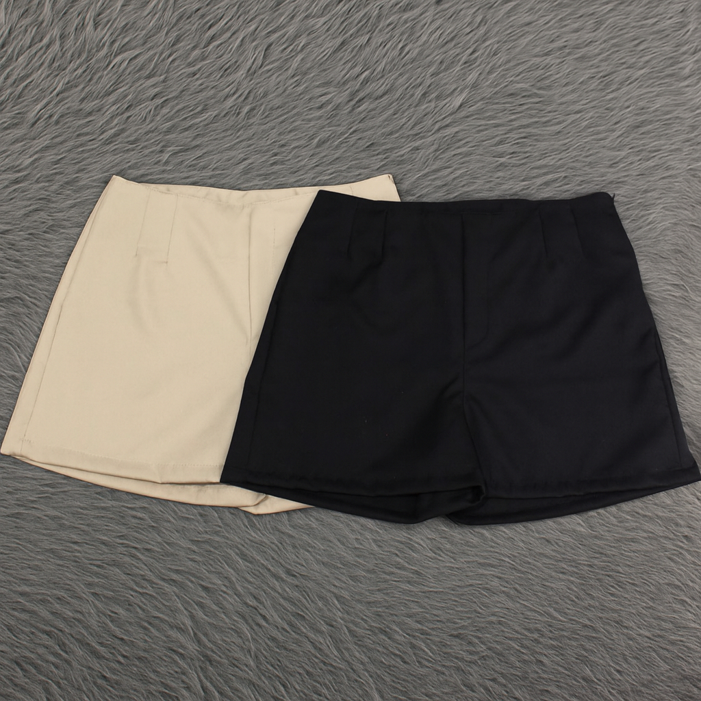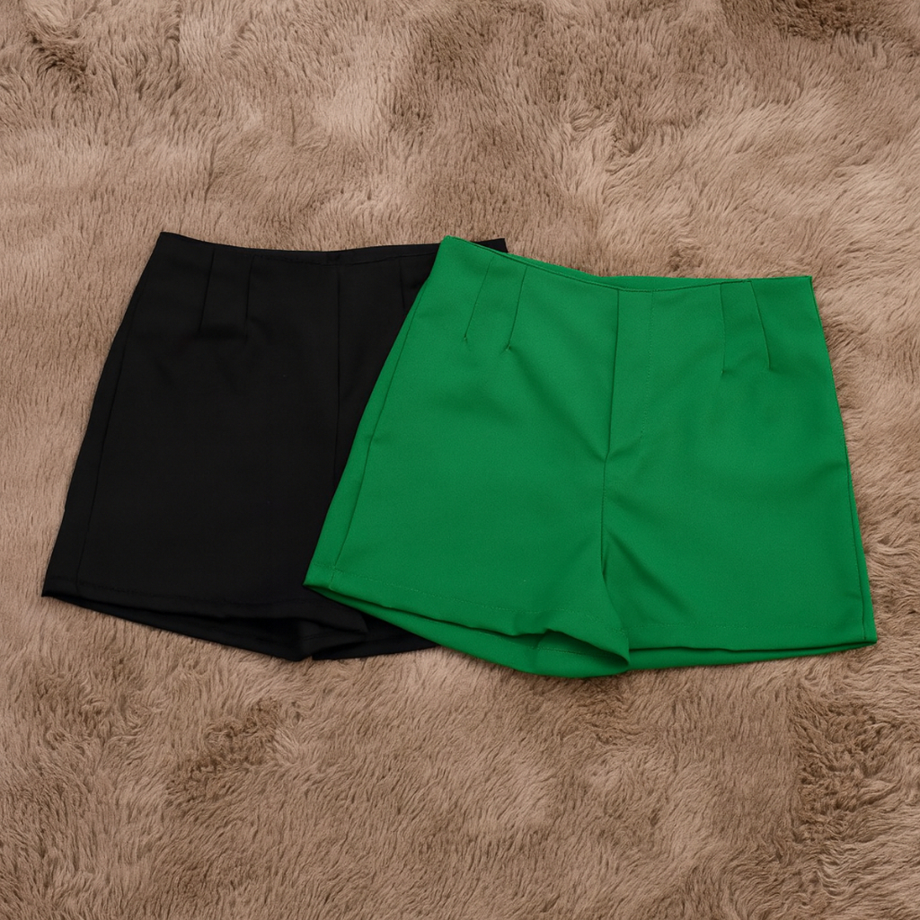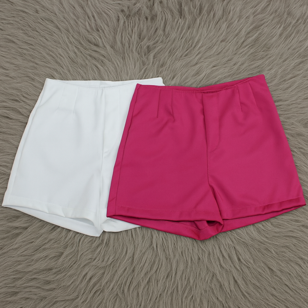 Kit 2 Shorts Feminino Alfaiataria Casual Com Elastano e Zíper Na Lateral Social Cintura Alta