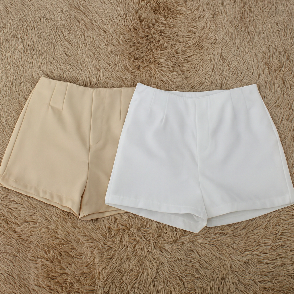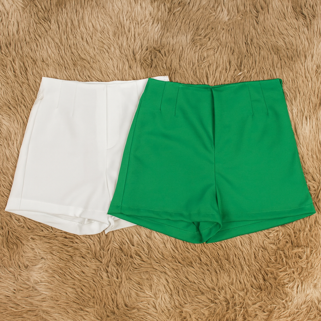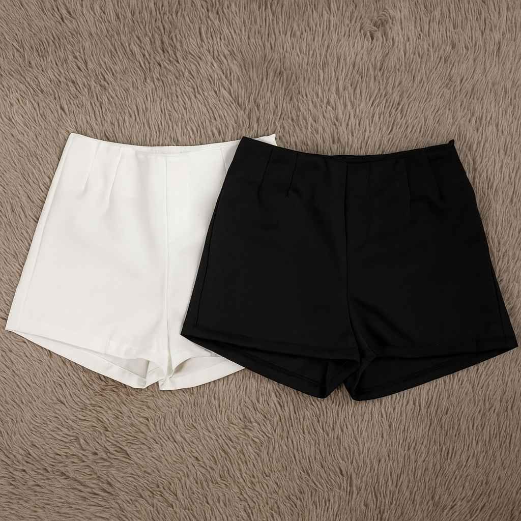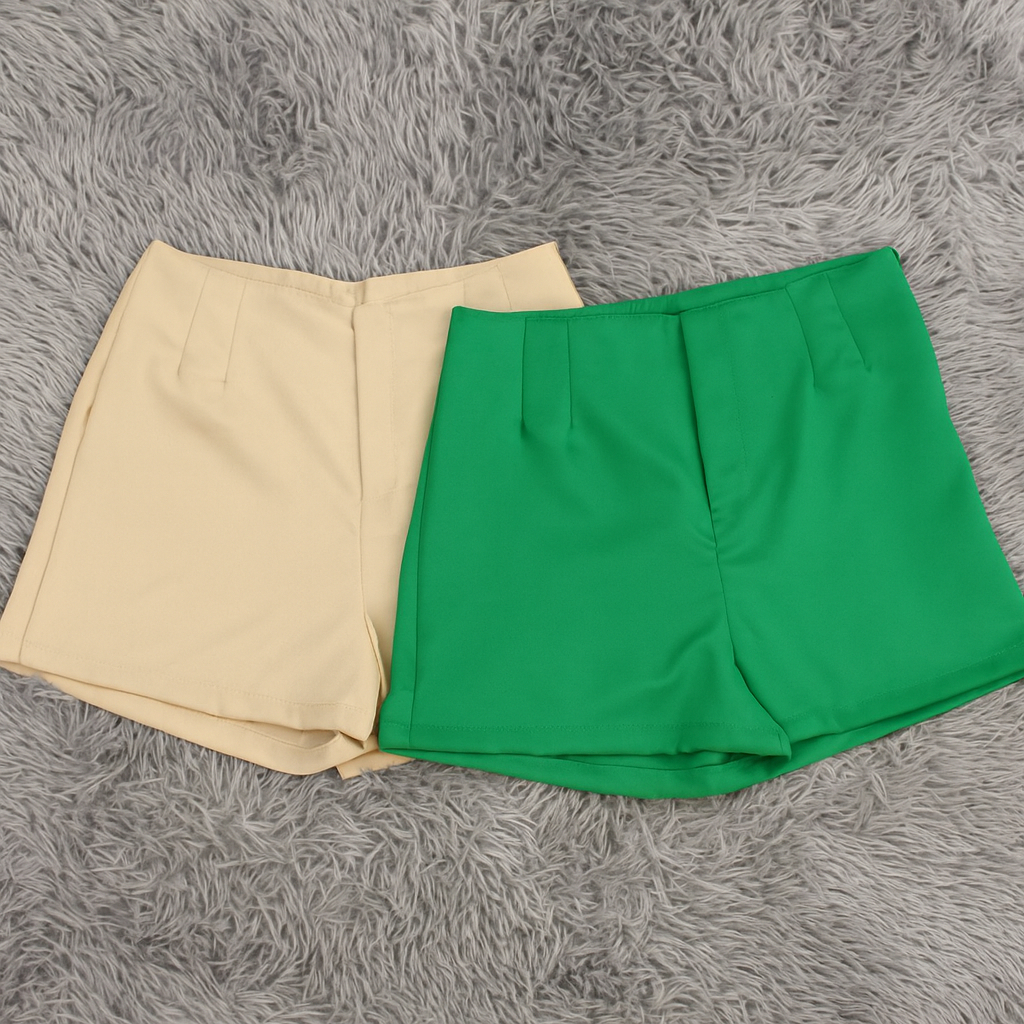 Kit 2 Shorts Feminino Alfaiataria Casual Com Elastano e Zíper Na Lateral Social Cintura Alta