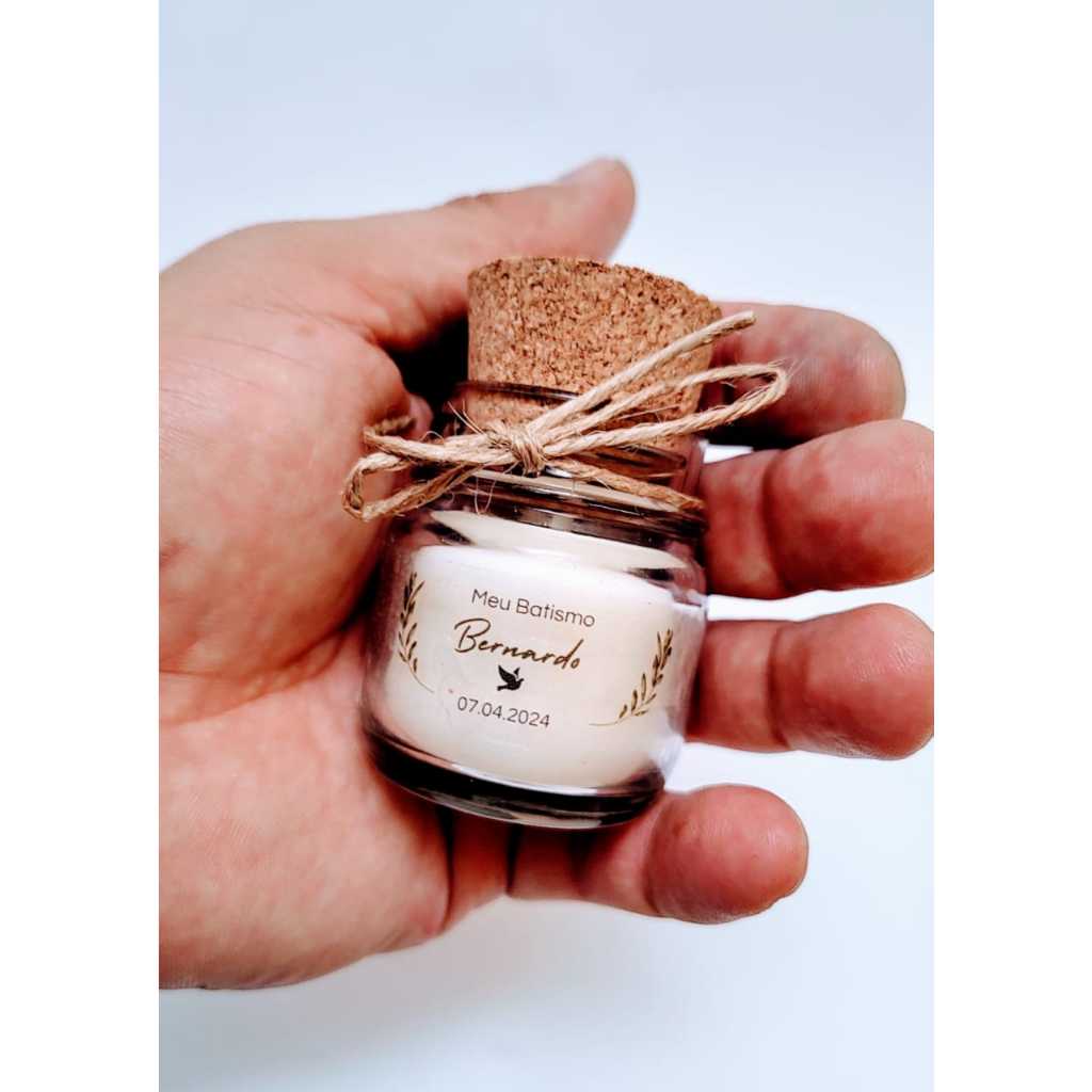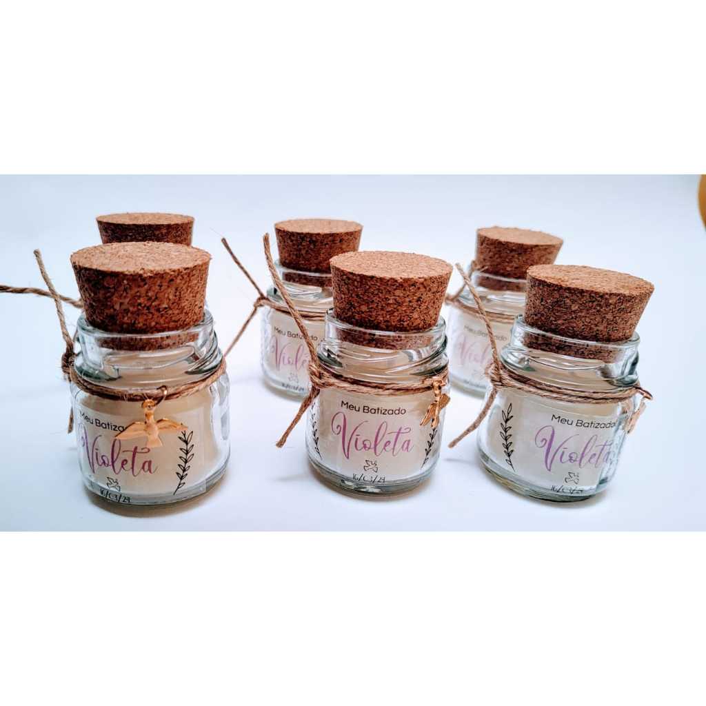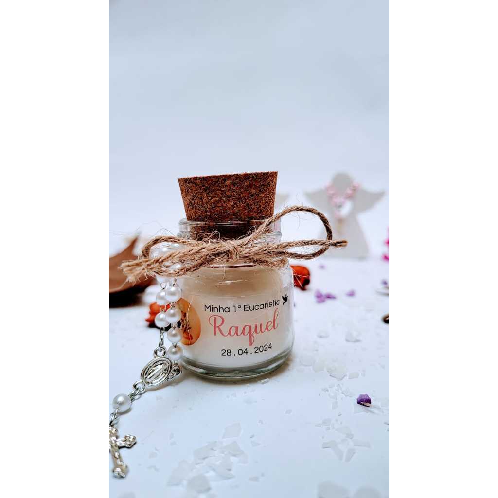 8 vela + rolha + vidro para casamento - batizado - batizmo - 15 anos personalizada + mini terço + organza