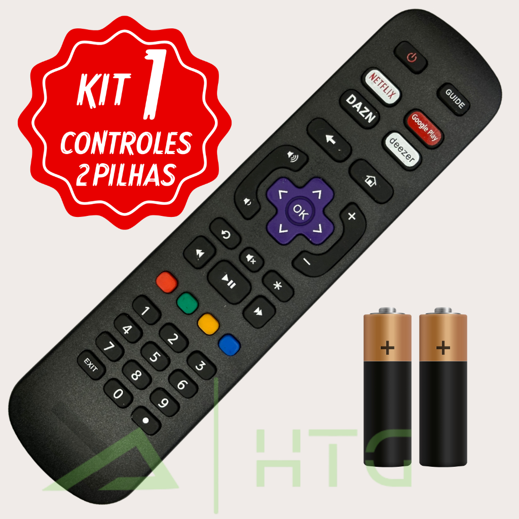 Kit Controle Remoto TV Smart AOC Roku 32S5195/78G 43S5195/78G Netflix GloboPlay DAZN Deezer SKY-9091