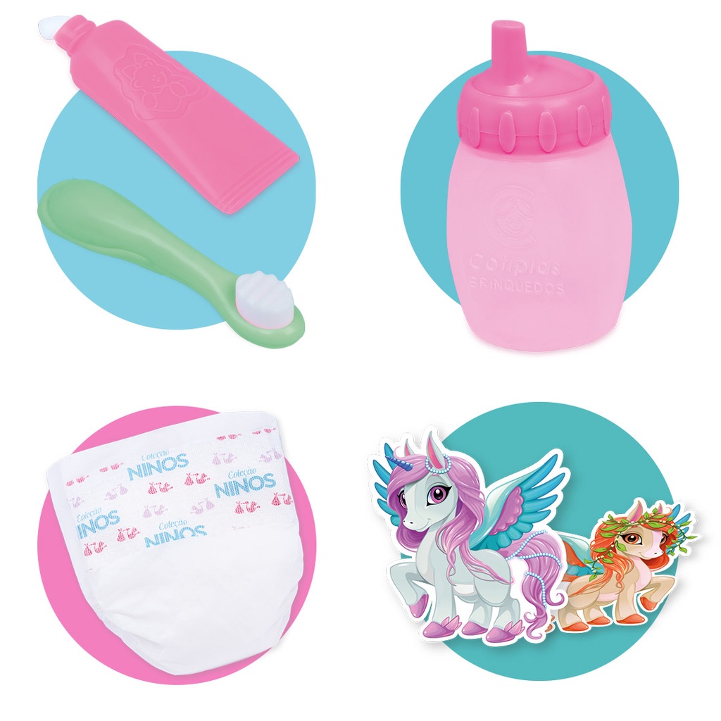 Boneca Bebê Unicórnio Faz Xixi Com Fralda, Escova o Dentinho