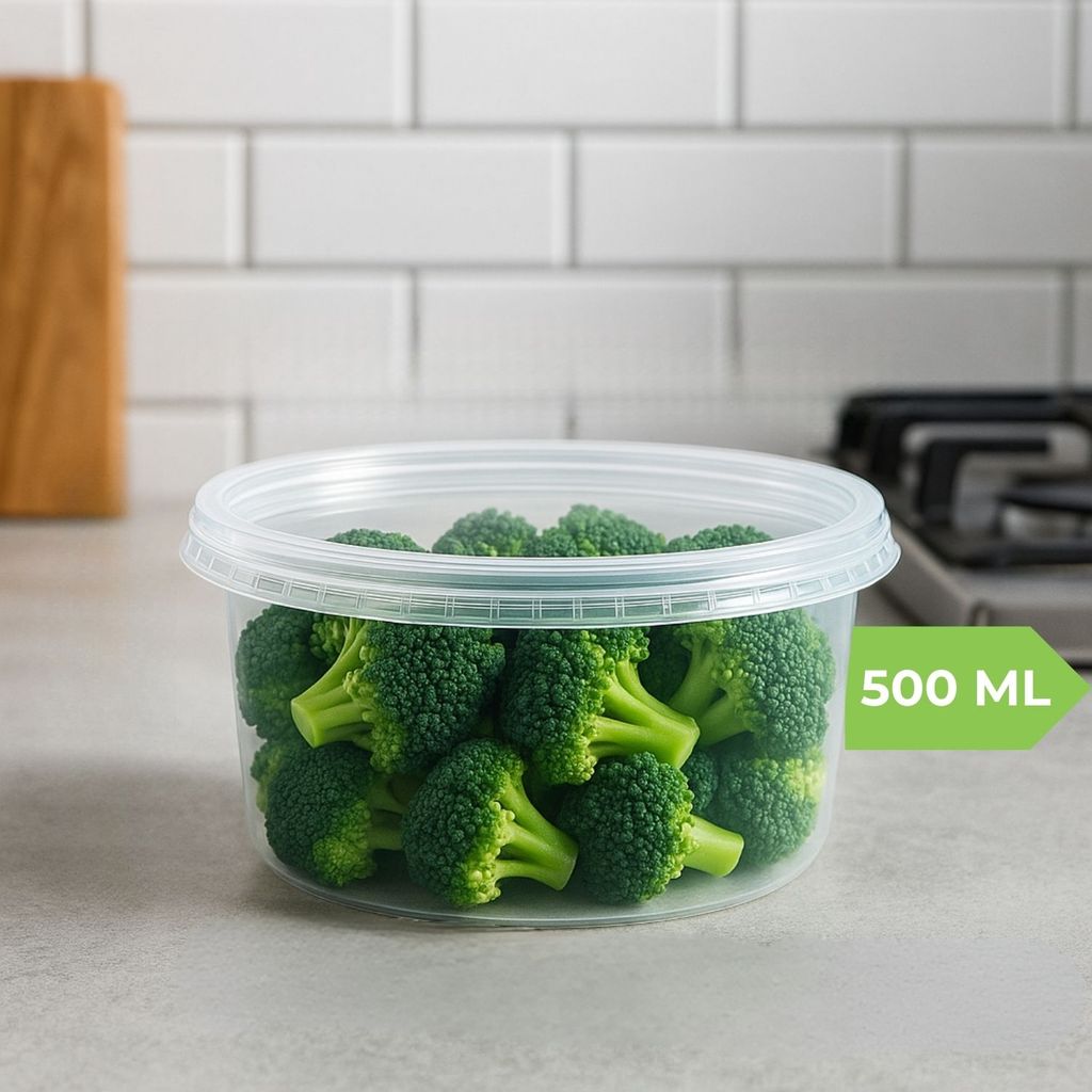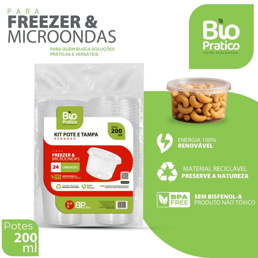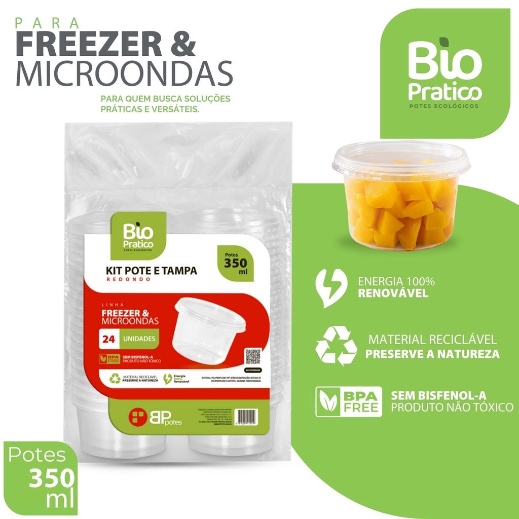 Kit Pote Plástico Redondo Descartável c/Tampa 200/250/350/500ml 24Un P/Bolo de Pote Açaí Marmita Freezer Microondas