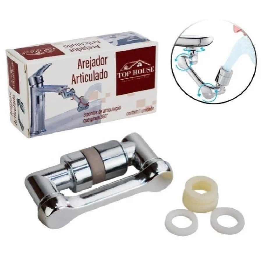 Arejador Articulado Extensor De Torneira 14x4Cm 360 Graus 2 Modos Jato Spray Pia Banheiro Cozinha