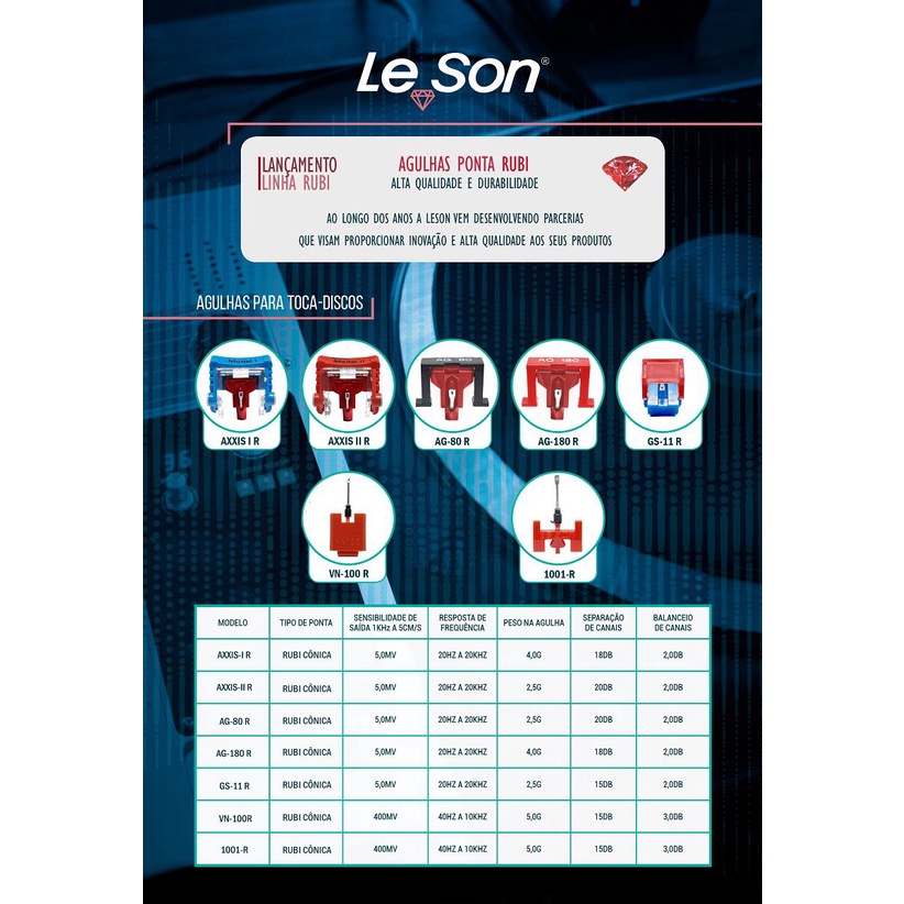 Agulha AG-80 Rubi Original Leson Para Toca Disco e Vitrola - AG-80R