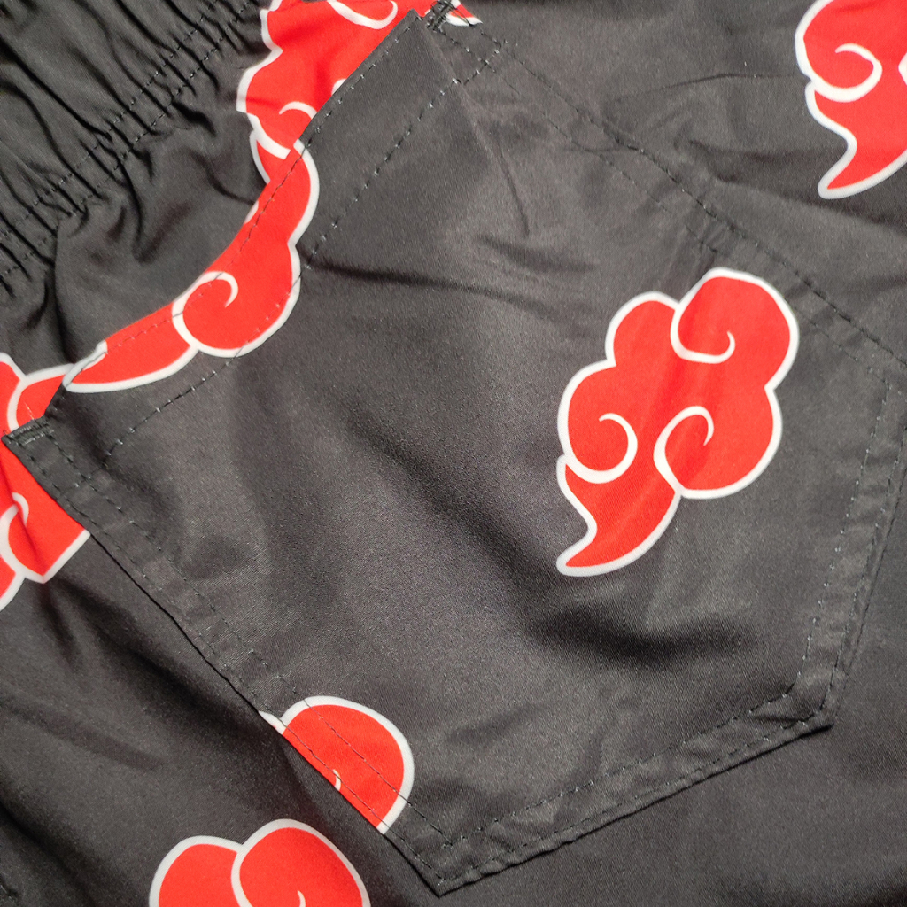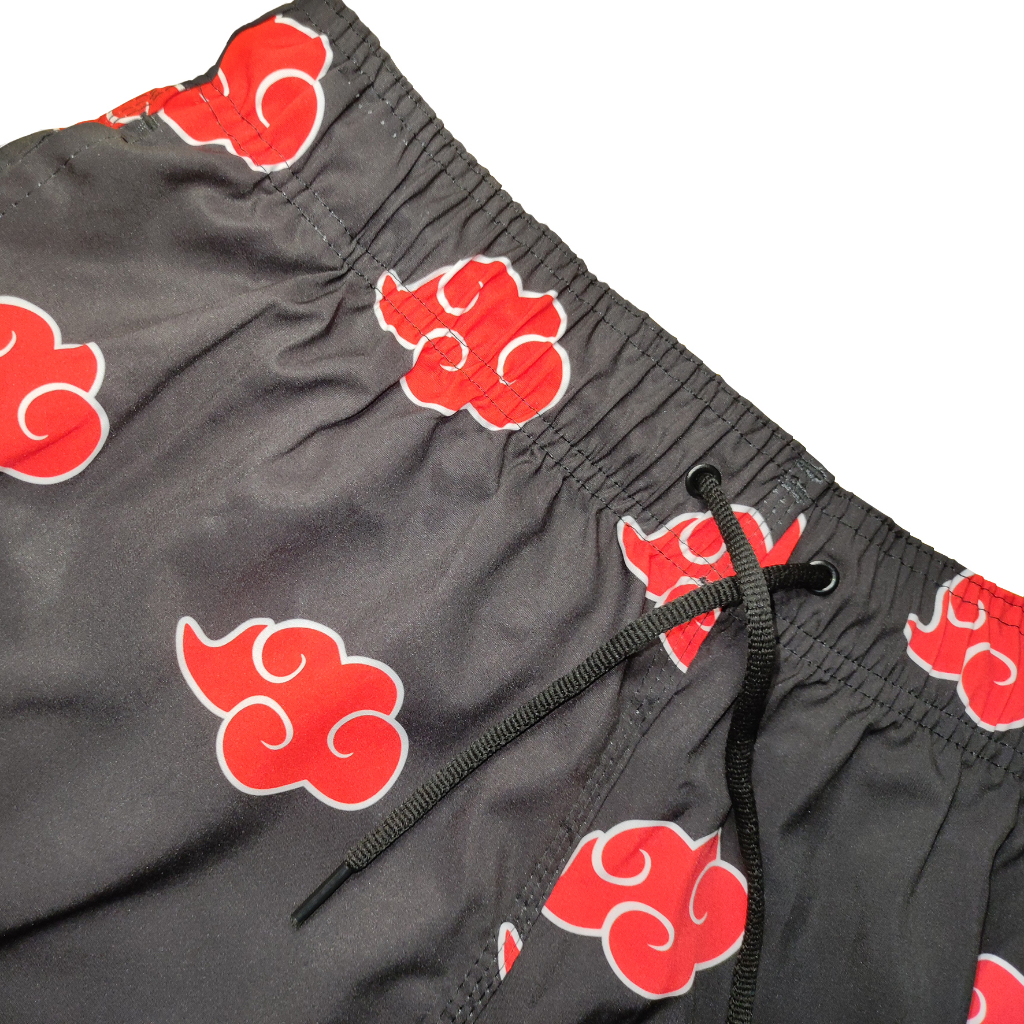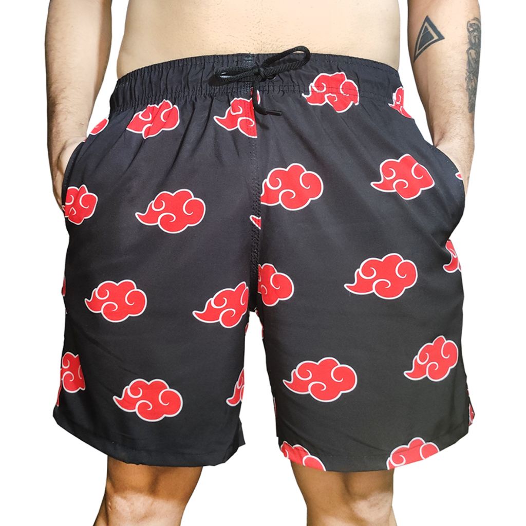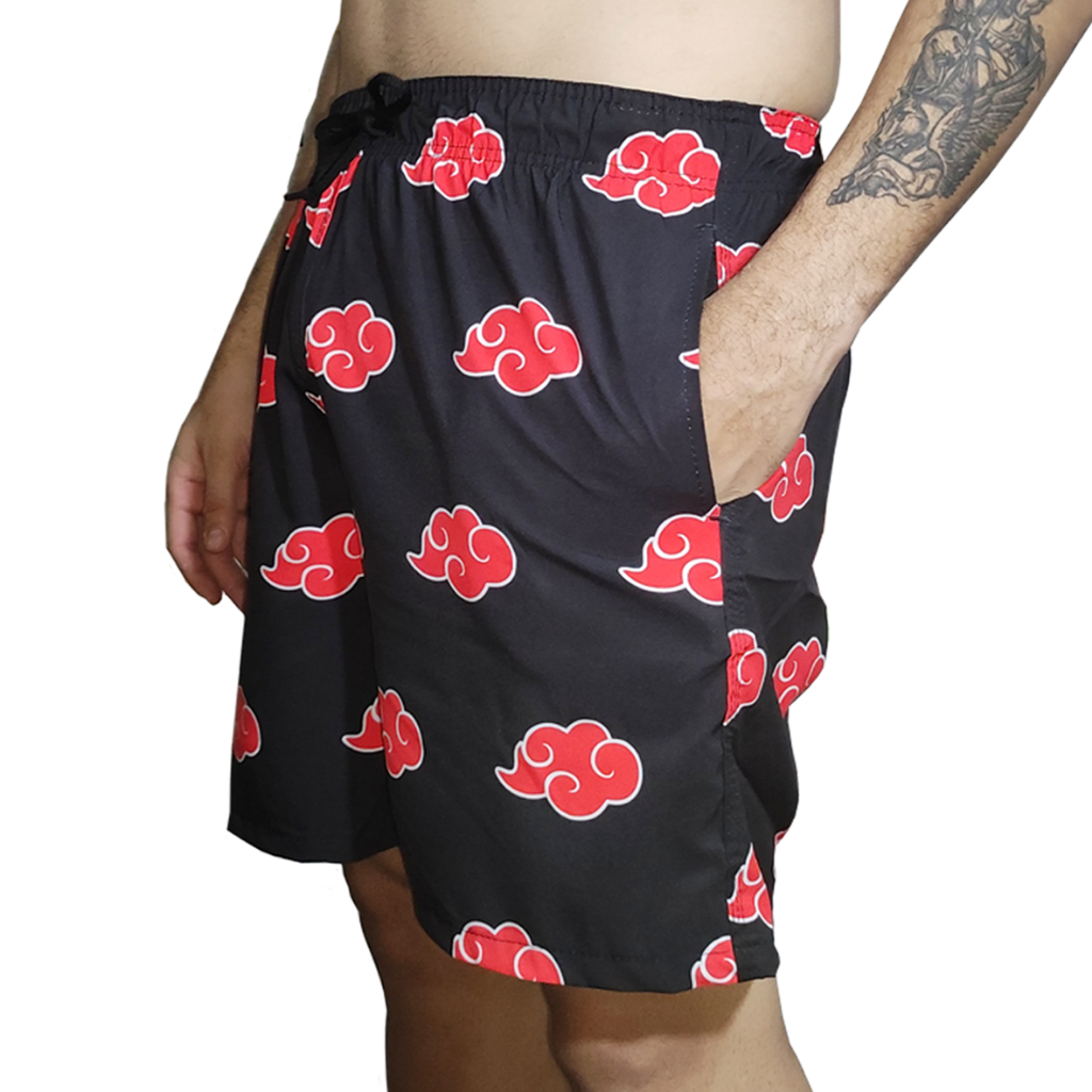 Short Masculino Elastano Naruto Akatsuki Nuvens Moda Praia Preto